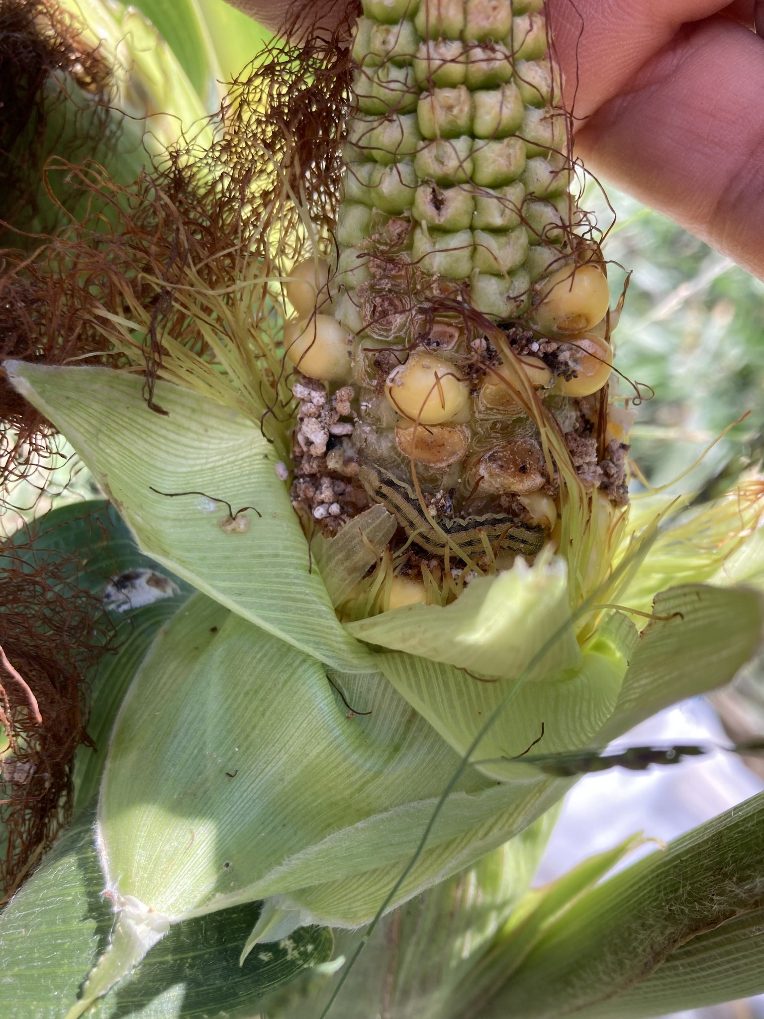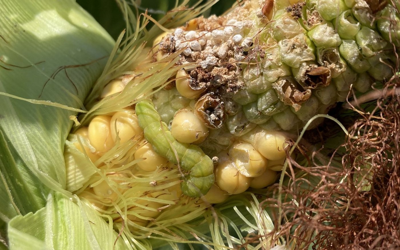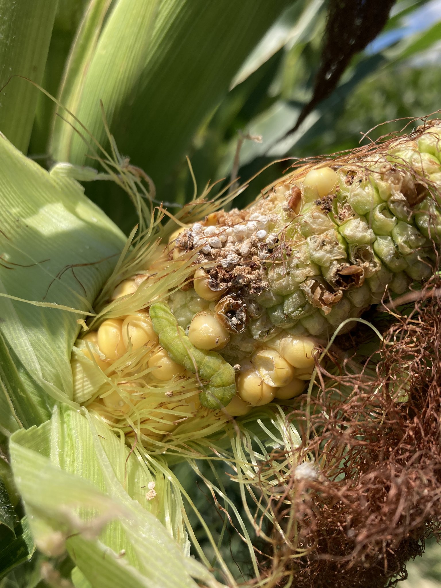 Dies hängt von der Kultur (anfällig oder nicht, empfindliches Stadium der Pflanze in Bezug auf den Zyklus des Schädlings) und vor allem von den Jahren ab. Es ist wichtig, zu beachten, dass die Raupe dieses Nachtfalters ein grosses Wirtspflanzenspektrum hat. Im Mais wird sie seit mehreren Jahren (heuer August und September) beobachtet. Dabei kam es dieses Jahr zu einigen Schäden (Kantone AG, FR, VD). Bei den beobachteten Schäden haben sich die Raupen jedoch bereits unter die Lieschen in den Kolben gefressen. Eine Bekämpfung war zu diesem Zeitpunkt somit nicht mehr möglich.