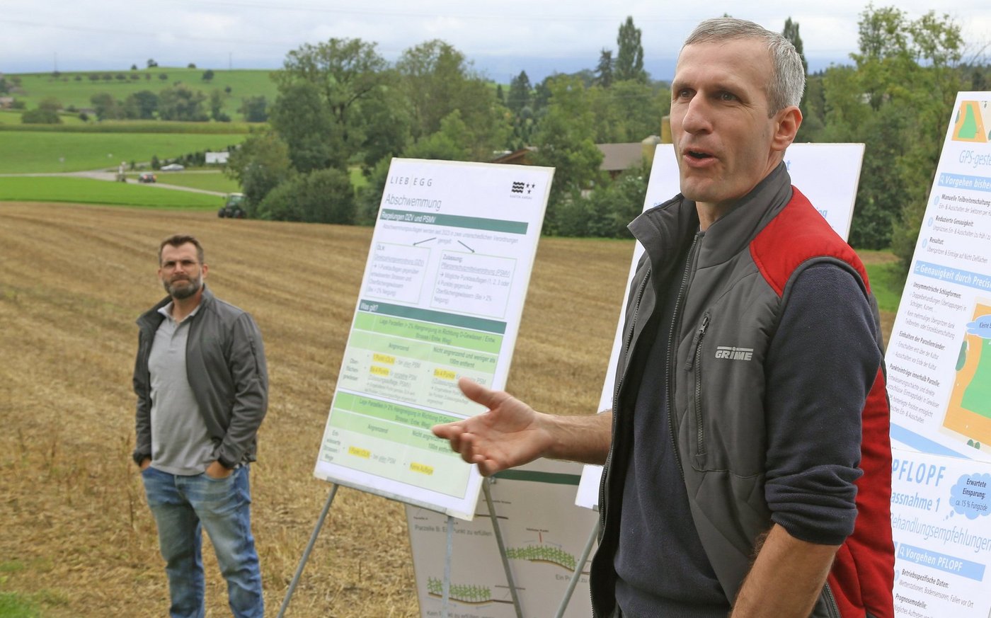Massnahme zwei (GPS-Lenksysteme zur Minimierung der Fahrgassenüberlappung) kann Müller nicht empfehlen, weil sie für einen Standardbetrieb viel zu teuer ist. Gute Erfahrungen machte er hingegen mit Massnahme drei (GPS-gesteuerte Pflanzenschutzgeräte). In der Praxis lagen die PMS-Einsparungen bei mindestens 5 Prozent. Andreas Distel, Leiter Pflanzenschutzdienst an der Liebegg, vertritt bei Pflopf den Aargau in der Projektträgerschaft. «Das Projekt ist mit hohen Erwartungen gestartet», ergänzte er Müllers Ausführungen. «Inzwischen hat man in einigen Bereichen zurückbuchstabieren müssen.» Die Massnahmenumsetzung läuft bis 2026, danach folgen zwei Jahre wissenschaftliche Auswertung.