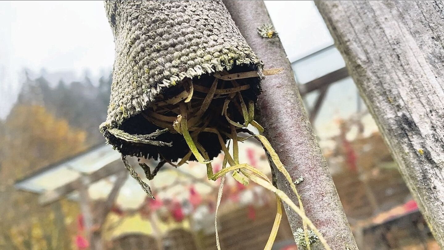 Wenn Dünger gestreut werde, sei darauf zu achten, dass ungefähr einen halben Meter um den Stamm herum kein Gras vorhanden ist, sonst nimmt dieses den Dünger auf. Bei jungen Bäumen vor dem fünften Standjahr sind Herbizide erlaubt, um den Stamm von Graswuchs freizuhalten. Auch Mulchen auf der Baumscheibe ist zulässig. Zu viel Düngen ist aber auch nicht gut, denn dies fördere Läuse, weiss Aeschimann, besonders bei jungen Bäumen. So hat er auf seinem Betrieb kleine Schlafsäcke für Ohrwürmer an die Bäume gehängt – natürliche Feinde der Läuse.