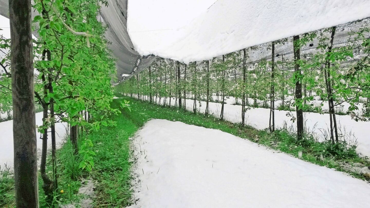 «Wir hatten uns hauptsächlich auf Frost eingestellt», erklärt Philipp Hotz vom Hotzenhof in Baar. Das Gras in den Fahrgassen wurde gemulcht, die Frostkerzen aufgestellt und das Foliendach über den Steinobstanlagen geschlossen. Unter der Folie blieben die Temperaturen dadurch immer im positiven Bereich. «Dass wir dann bei uns auf 450 m ü. M. auf dem Foliendach plötzlich zehn Zentimeter Schnee hatten, war eine ganz unschöne Überraschung», so Philipp Hotz weiter. Glücklicherweise habe der Witterungsschutz gehalten und es habe keine Schäden gegeben.
