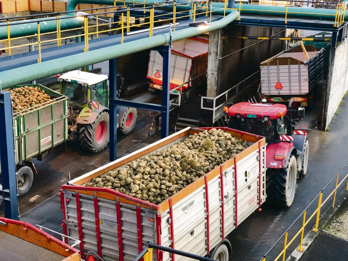 Bei der Rübenanfuhr liegt der Schwerpunkt derzeit bei der Planung der Rübenlieferungen über die Festtage. Da in Frauenfeld hohe Tagesmengen auf der Strasse möglich sind, beschränken sich die Lieferungen an Sonn- und Feiertagen auf den 26. Dezember und 2. Januar. In Aarberg ist die Entladeleistung auf ca. 600 t/h begrenzt. Lieferungen sind daher zusätzlich am 22. und 29. Dezember nötig. In der vergangenen Woche sorgten in der Westschweiz Fehler bei der Einteilung der Lokführer sowie von anderen Bahnunternehmen beanspruchte Abstellgleise zu Wartezeiten und Zugsausfällen, trotzdem wird es möglich sein, die Bahnanfuhr bis Weihnachten programmgemäss abzuschliessen.