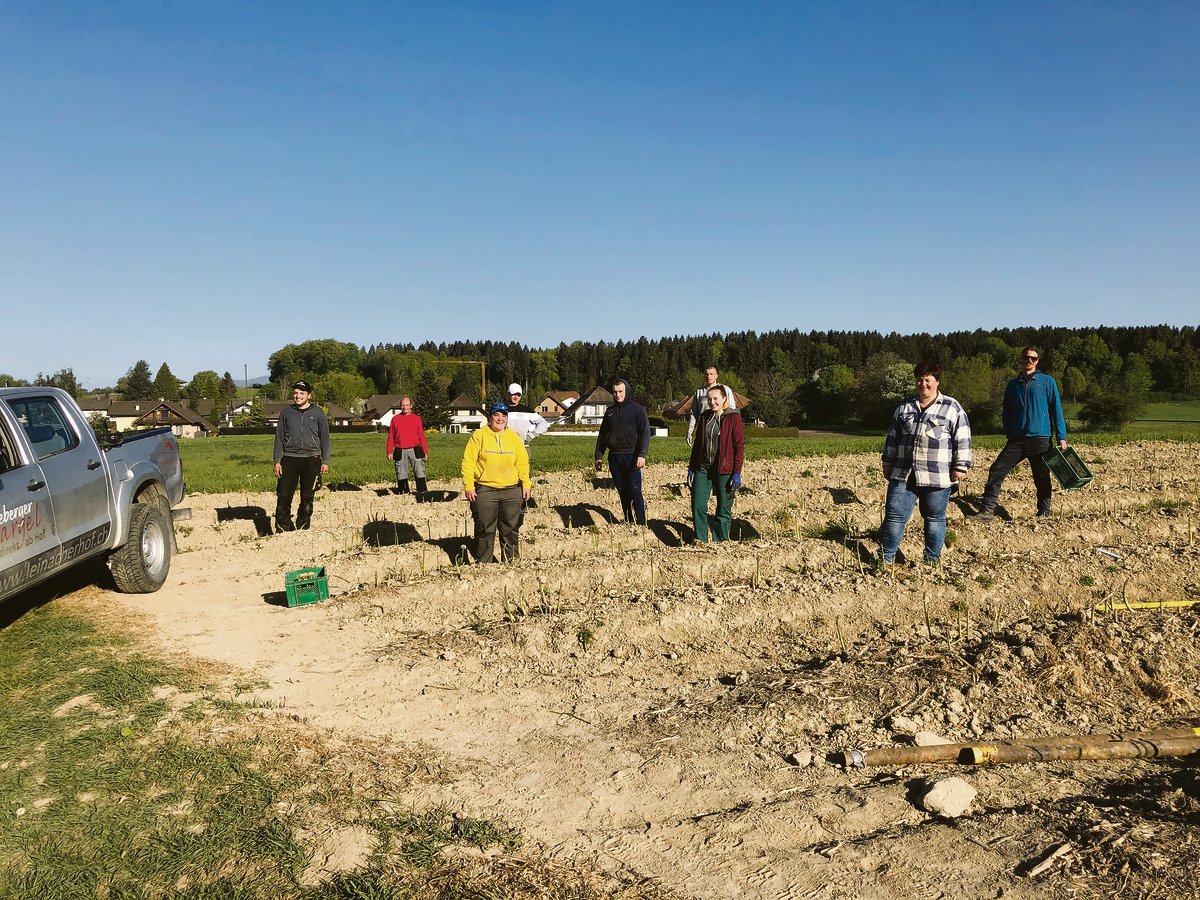 Ganz anders präsentiert sich die Lage bei Roland Grütter. Von seinen langjährigen polnischen Erntehelfern, die vorwiegend weisse Spargeln stechen, sei heuer kein einziger gekommen. Dafür kamen vier Neue, die angelernt wurden. Zudem habe er bislang Schweizer Helfer bei den grünen Spargeln und bei der Verarbeitung beschäftigt. Von denen gehören einige altershalber der Risikogruppe an und arbeiten demnach ebenfalls nicht bei Grütters. Auf dem Leinacherhof wurden nun rund zehn freiwillige Schweizer Helfer angestellt. Es seien mehrheitlich junge Leute mit unterschiedlichem Hintergrund. Seit einer Woche sticht Roland Grütter mit ihnen allen nun Spargeln und sagt: «Ich bin positiv überrascht, das Ernteresultat sieht gut aus, auch wenn der Betreuungsaufwand grösser ist.» Zwar benötige er mehr Personen, um dieselbe Fläche zu ernten, wie andere Jahre. Doch Roland Grütter ist es lieber, dass sich die ungeübten Helfer Zeit nehmen können, die Spargeln sauber zu stechen. Dass der diesjährige Personalaufwand höher ausfallen wird, ist sich der Produzent bewusst. Da die Spargelernte auf dem Leinacherhof gerade erst angelaufen ist, vermag die verfügbare Tagesmenge die Nachfrage noch nicht zu decken. Doch Grütter ist überzeugt, dass er mit seinen Helfern, ebenso bei Vollertrag, der für nächste Woche erwartet wird, «über die Runde komme, auch wenn die Arbeitstage etwas länger dauern als sonst.» Andrea Wyss