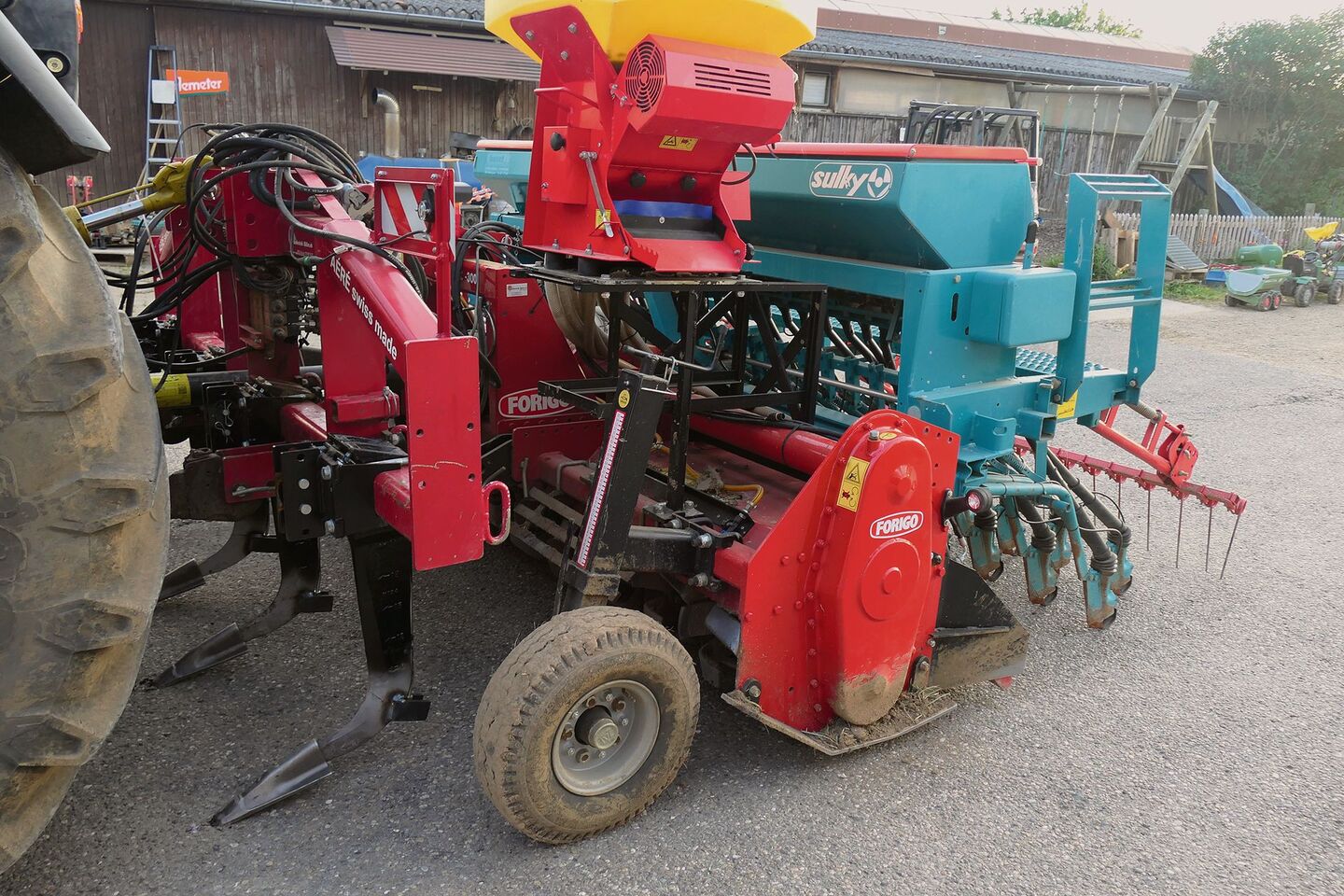 Der gelernte Landmaschinenmechaniker hat eine Gerätekombination konstruiert, die es ihm erlaubt, in einem einzigen Durchgang den Boden zu lockern, zu bearbeiten und zu säen. Dazu gehören ein Parzellen-Tiefenlockerer, Einspritzdüsen, eine Fräse sowie ein Saatgutstreuer.