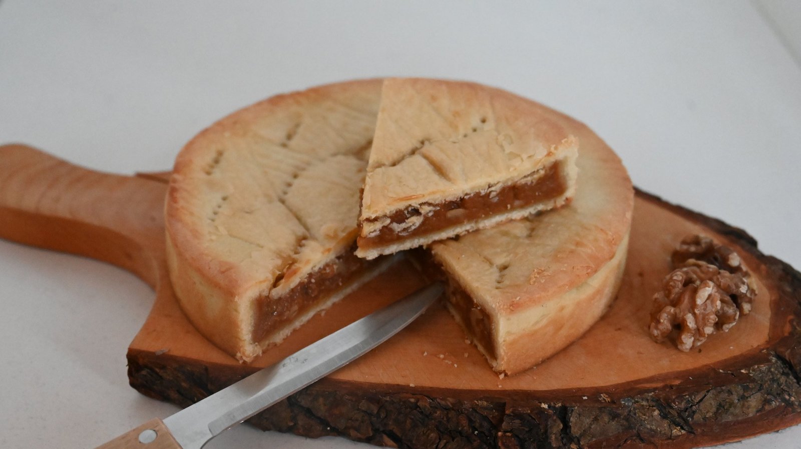 Teig dritteln. Einen Teil direkt auf dem vorbereiteten Formenboden auswallen. Springform-Rand schliessen. Den 2. Teil des Teiges auf Backpapier zu einer Rondelle von 22 cm Durchmesser auswallen, mit Gabel einstechen, kühl stellen. Den 3. Teil des Teiges zu einer Rolle formen, dem Formenrand entlang auf dem Teigboden gut andrücken, am Rand 4 bis 5 cm hochziehen. Füllung in der Form verteilen. Teigrand mit Eiweiss bestreichen. Teigdeckel darauflegen, andrücken.