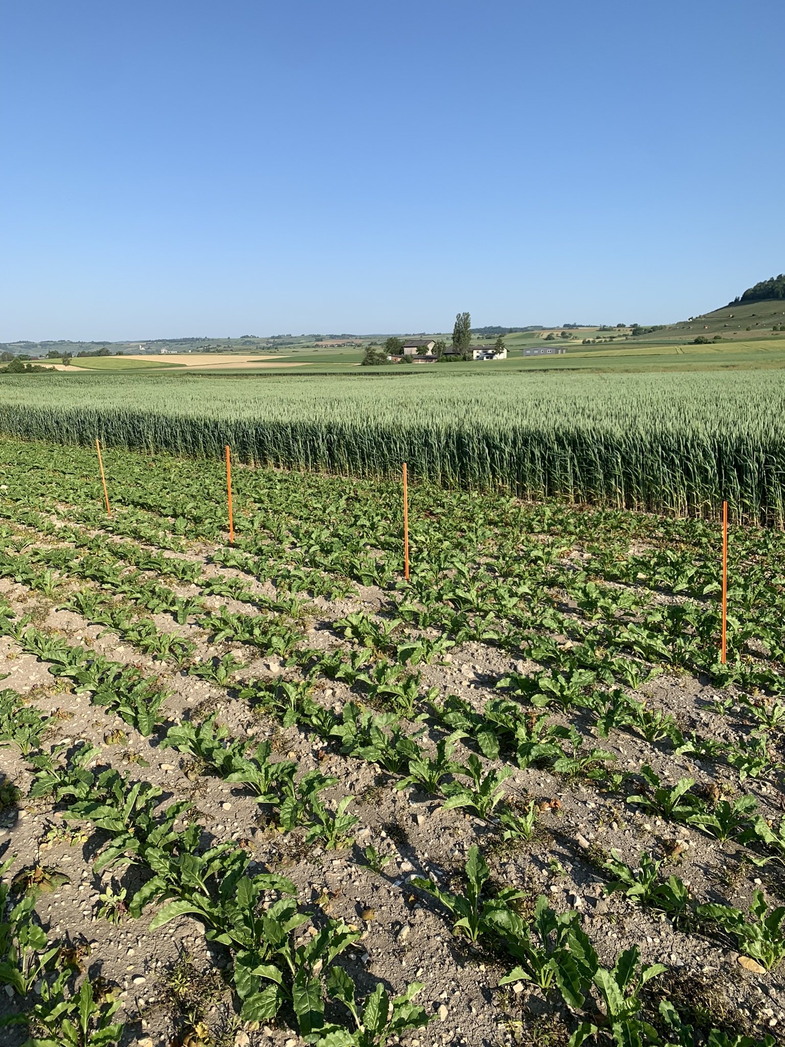Weiter fällt auf, dass die Zuckerrüben im Westen am schönsten sind. An den meisten Orten werden sie dort in den kommenden Tagen die Reihen schliessen. Im Mittelland und im Osten dürfte das noch etwas länger gehen – im Osten ist dies allenfalls in zwei Wochen zu erwarten. Somit sollte in den kommenden Tagen in den meisten Regionen der Abschluss der Herbizidbehandlungen anstehen (wenn nicht schon erfolgt). Im klassischen Anbau ist darauf zu achten, dass die angestrebte Metamitronmenge von 4–5 l/ha ausgebracht worden ist. Im Abschlusssplit sollte die Menge jedoch nicht über 2 l/ha betragen. Eine allfällige Gräserbehandlung – weil bis anhin verpasst oder nicht möglich – kann auch dann erfolgen, wenn die Gräser das Rübenlaub bereits überragen. Im Conviso-Anbau gilt es keine speziellen Punkte zu beachten.