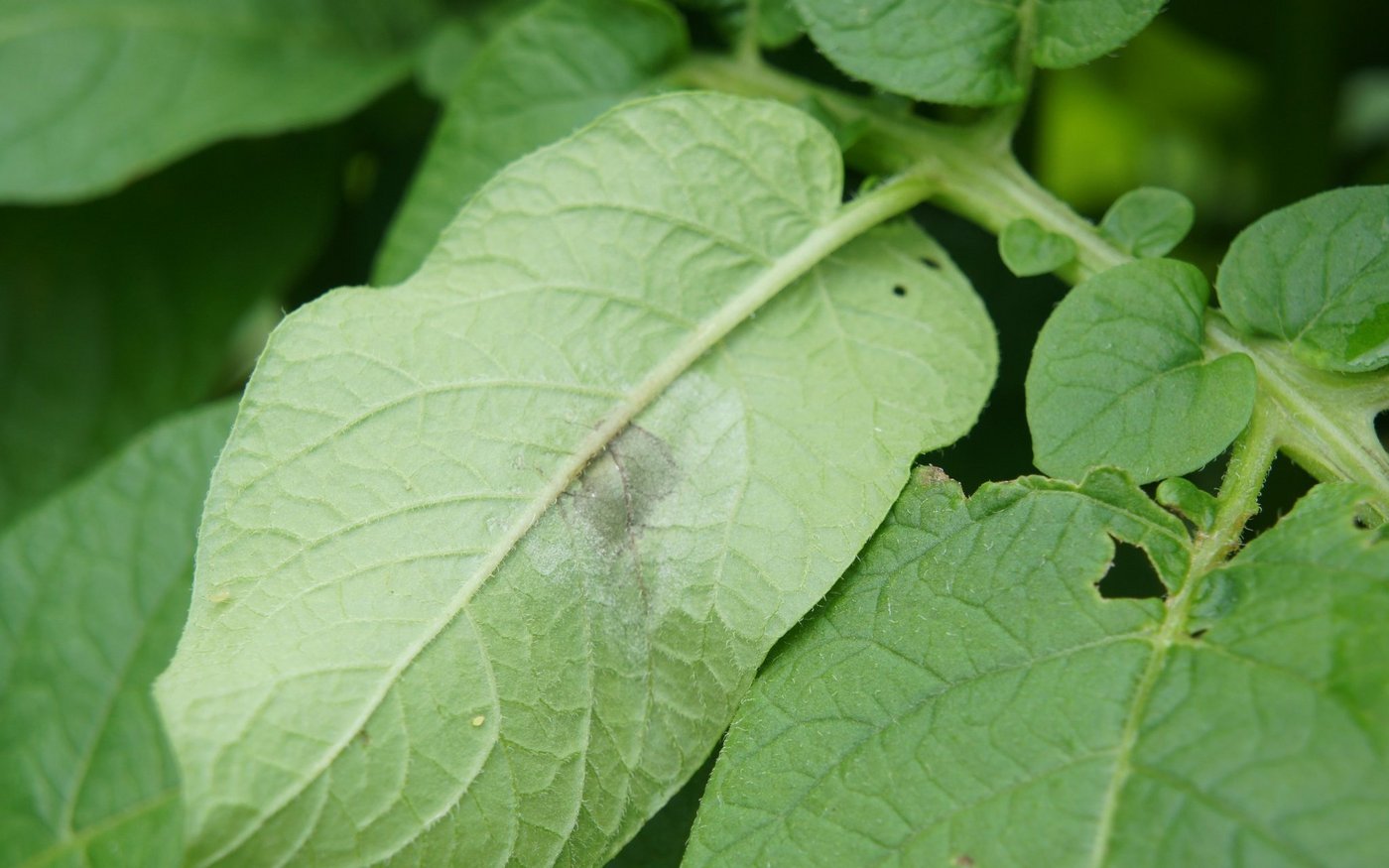 Momentan ist die Witterung für die Entwicklung der Krautfäule nicht förderlich, da sie regnerisches Wetter und eine Luftfeuchtigkeit von mehr als 75 % bevorzugt. Es ist aber Wachsamkeit angesagt und spätestens beim Reihenschluss wird normalerweise ein Fungizid gespritzt.