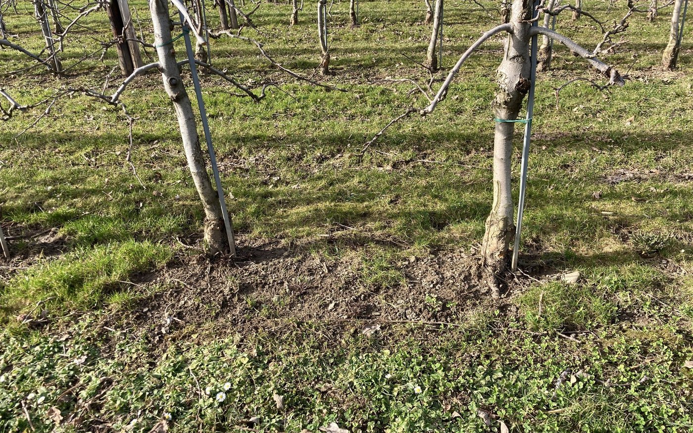 Wer herbizidfrei arbeiten will, dem stehen mechanische Lösungen zur Verfügung. Für unkrautfreie Baumstreifen eigne sich gemäss Thomas Kuster am besten zweimaliges Hacken mit dem Ladurner. Zwar steige der Unkrautdruck danach wieder an, die Wuchshöhe könne mit dem Fadengerät jedoch reguliert werden. Über die gesamte Saison ist die Baumstreifenpflege mit der rein mechanischen Variante gleich gut oder sogar besser als bei einem Teilverzicht von Herbiziden (Glyphosat und Fadengerät), das haben Versuche ergeben. Weitere Varianten wie Rollhacke, Grasskiller, Bürstengerät, Scheibenegge, Heisswasser oder Abflammen würden Nachteile bei der Wirkung im Stammbereich und/oder beim Energieaufwand zeigen.