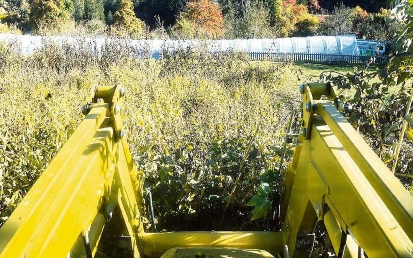 «Topinambur ist in der Kulturführung sehr einfach, wir hatten bislang nicht mit Schädlingen zu kämpfen. Allerdings macht die Pflanze starke Ausläufer. Sie vermehrt sich vegetativ, weshalb man den Ausfall unbedingt gut regulieren muss», erklärt Georg Blunier, «wir bauen sie deshalb bislang immer an der gleichen Stelle an.» Topinambur produziert viel Biomasse, die Pflanzenstängel können bis zu drei Meter hoch werden. «Bei der Ernte haben wir das Kraut mit dem Frontlader zu Boden gedrückt und hinten den Mulcher angehängt», berichtet Blunier. Dabei müsse man aufpassen, dass man nicht aus Versehen die Knollen aus dem Boden hole. Dazu komme dann der Schüttelgraber zum Einsatz. Nach der Ernte ist Gründlichkeit geboten: «Wegen der Gefahr des Verschleppens muss die ganze Maschine jeweils minutiös gereinigt werden. Auch das anfallende Kraut wird gesondert kompostiert», sagt der Landwirt. Das ist wichtig, weil Topinambur als invasiver Neophyt gilt und auf der Watchlist der Organisation Infoflora steht.
