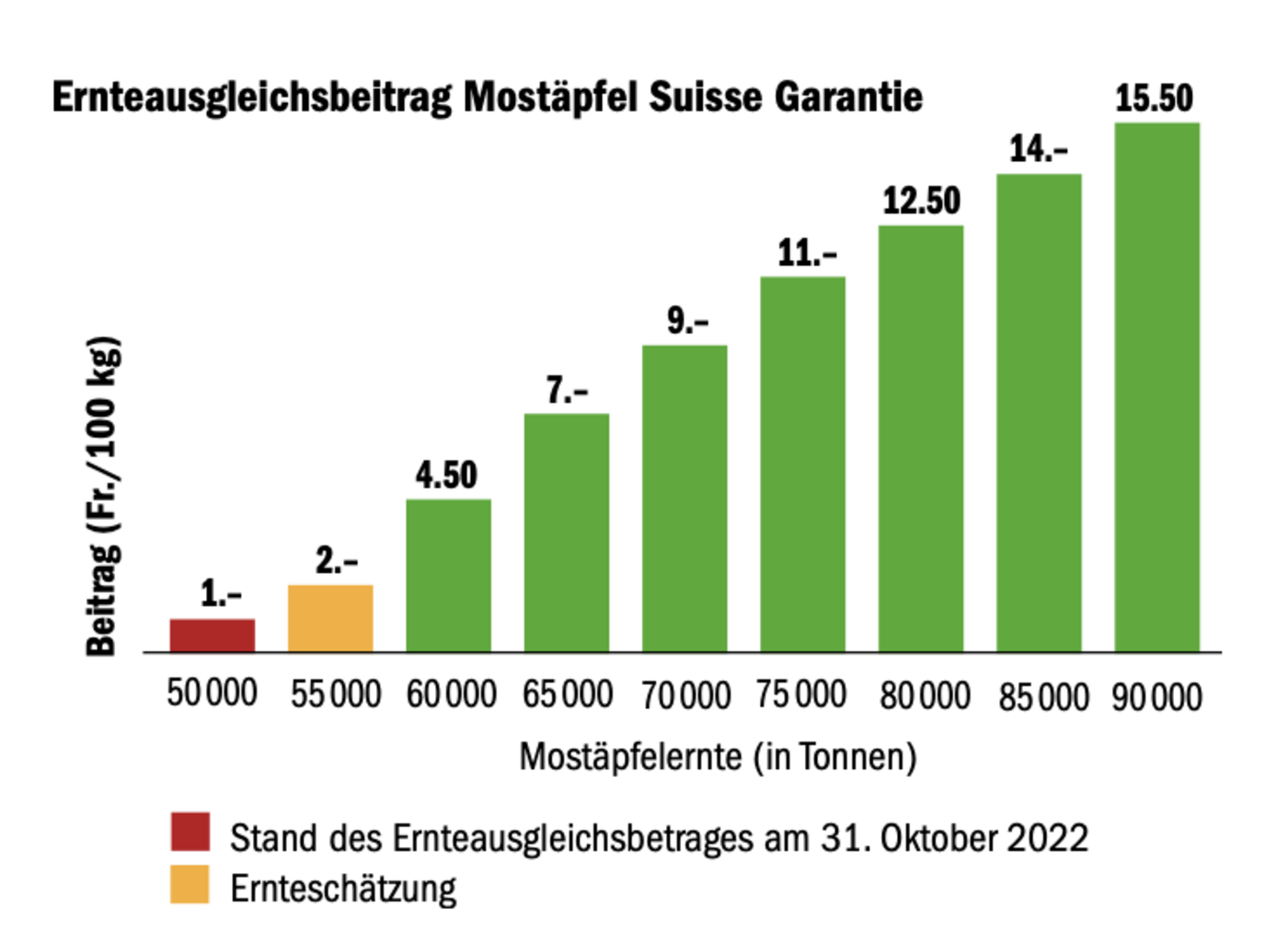 Gegenüber 2021 hat sich die Situation im Jahr 2022 grundlegend verändert. So haben einzelne Mostereien das Ernteausgleichssystem verlassen und mit dem Fruchtverarbeitungszentrum Holderhof ist ein weiterer Akteur aktiv geworden. Diese Tatsachen führten zu Anpassungen im Schlussbericht 2022. An der nächsten Sitzung des Ausschusses Ernteausgleich legt der Ausschuss Ernteausgleich fest, welche Zahlen zukünftig publiziert werden; im Sinne einer Optimierung und als Beitrag zur Transparenz.