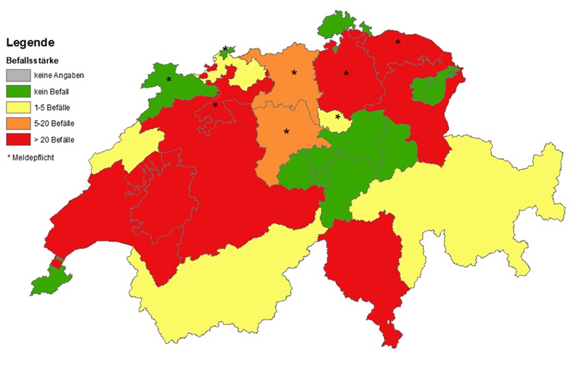 Während vier Jahre wurde die Situation in der Schweiz evaluiert und auf 21 befallenen Flächen in sechs Kantonen verschiedene Massnahmen getestet. Zur Kontrolle verfolgten die Forschenden die Entwicklung der Knöllchenzahlen im Boden.
