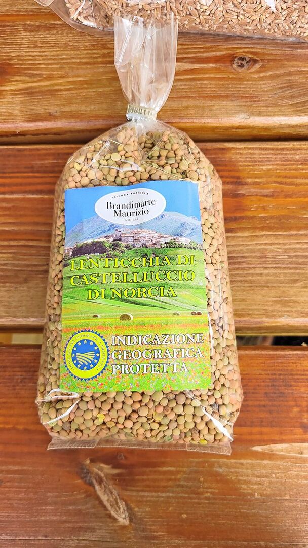 Nach diesem Einblick in eine sehr handarbeitsintensive Produktionsweise geht es weiter zur Azienda Agricola del Monte Castello. Das Familienunternehmen Monte Castello wurde in den 80er-Jahren gegründet, um Anbau, Abnahme, Reinigung und Verkauf von verschiedenen Getreidearten und Hülsenfrüchten zu koordinieren. Bruno Fedeli, der Seniorchef, und seine Tochter Myriam führen uns durch die Firma. Zu Beginn hat das Unternehmen nur Getreide verarbeitet, mit der Zeit stieg die Nachfrage nach Hülsenfrüchten und heute werden neben Linsen auch Kichererbsen und verschiedene Bohnen angebaut und vermarktet.[IMG 4]