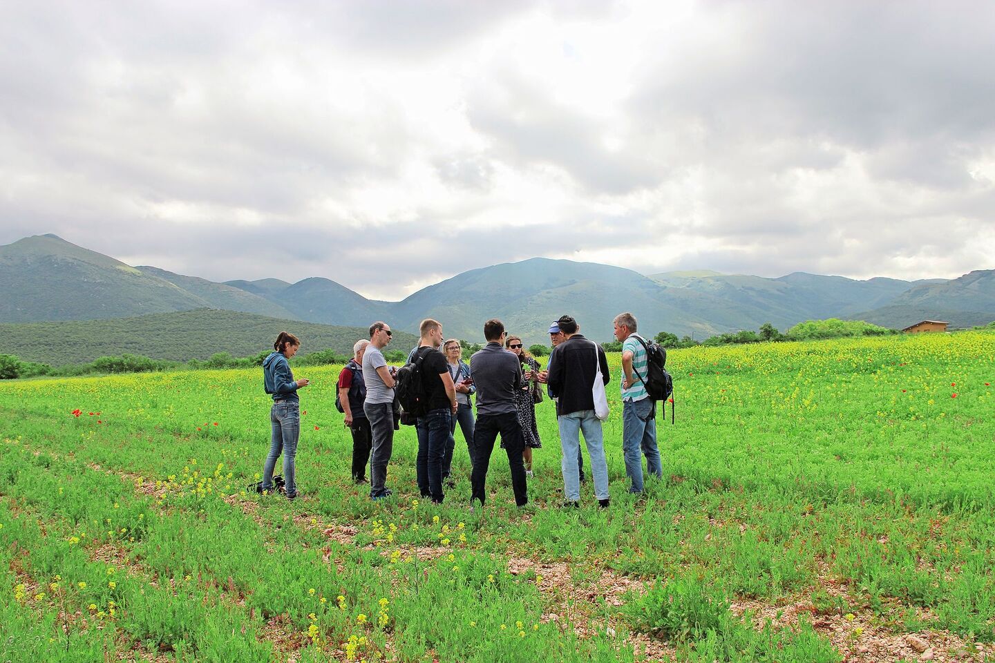Der zweite Tag führt uns an den Fuss der sibyllinischen Berge, nach Norcia in Umbrien. Dort gewährt uns Maurizio Brandimarte einen spannenden Einblick in seinen Familienbetrieb. Er hält rund 350 Milchschafe und bewirtschaftet mit seiner Familie 100 ha Land. Auf 35 ha baut er in einer dreijährigen Fruchtfolge Dinkel, Emmer und Linsen an, wobei die weidenden Schafe ebenfalls in die Fruchtfolge integriert werden. Ein Teil der Flächen liegt auf dem Hochplateau von Castelluccio, auf bis zu 1400 m ü. M.[IMG 3]