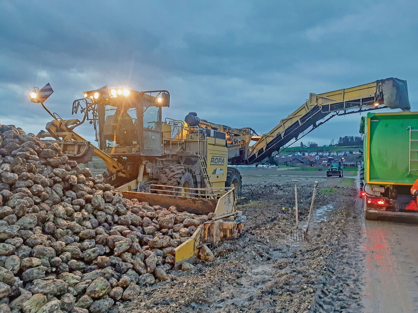 Thomas Vögeli vom Rübenumschlag Mittelland «ist gespannt», wie es um die restlichen Flächen der laufenden Kampagne steht. «Es ist eine ganz spezielle Situation.» Über 10 000 Tonnen müssten in seinem Einzugsgebiet noch geladen werden, sagt Vögeli. «Drei Viertel sind noch im Boden», schätzt der Geschäftsführer des Rübenumschlags. Von einer Beeinträchtigung der Rübenqualität geht er aber nicht aus. «Frost ist gefährlicher als Nässe», so der Fachmann.