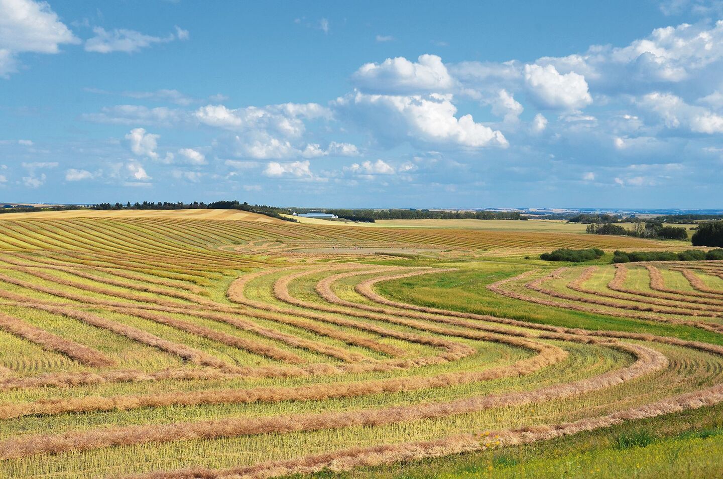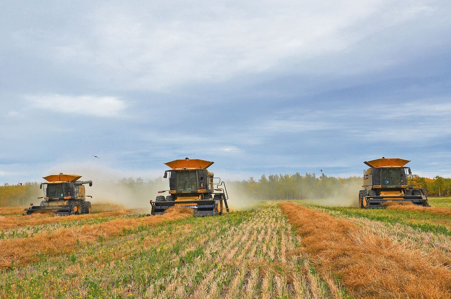 Es sieht aus wie ein Wettrennen – die drei Mähdrescher, die miteinander die langen Rapswalme auffressen. Es ist ein Wettrennen mit der Zeit. Von Ende August bis vielleicht Ende Oktober haben die Farmer im Westen von Kanada Zeit, das Getreide von hunderten oder auch tausenden von Hektaren nach Hause zu führen. Immer spüren sie den Druck, jederzeit könnte der Schnee kommen, dann ist Schluss mit der Ernte. So war es in den letzten vier Jahren zweimal. Erst im Frühjahr konnte fertig gedroschen werden, wenn es eigentlich Zeit wäre zum Säen. Das richtige Saatgut und die Anbaupraxis erhalten da einen wichtigen Stellenwert.