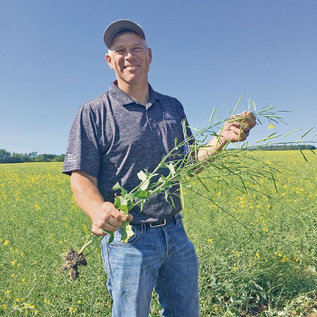 Neben den GVO-Sorten gibt es auch eine konventionell gezüchtete mit einer Toleranz für das Herbizid Clearfield. Abnehmer bieten für diesen Raps einen höheren Preis. Les Willms verwendete dieses Saatgut auf einem Feld, welches er mit Luzerne untersäte. Luzerne kann man nicht mit Roundup spritzen, aber mit Clearfield. «Diese Rapssorte muss separat gelagert und der Mähdrescher nach dem Dreschen des Felds gereinigt werden», erklärt Willms. «Der Aufpreis ist klein, es gibt aber mehr Arbeit; das Herbizid wirkt nicht so gut wie Roundup und ist teurer», so sein Fazit. [IMG 3]