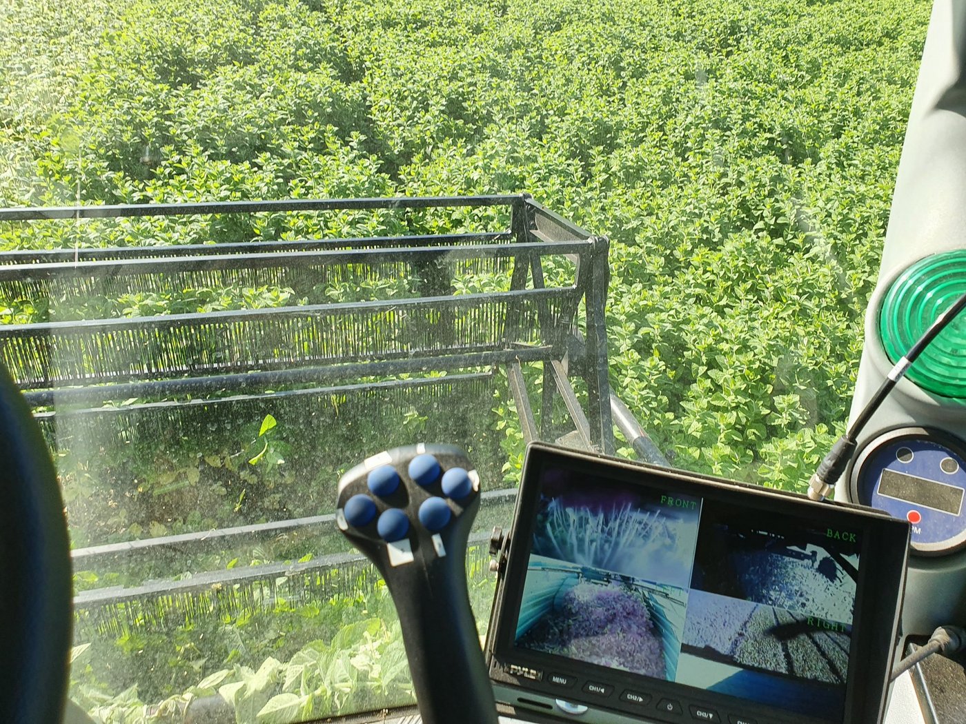 Der Ernter wird hydrostatisch angetrieben. In der Kabine ist eine GPS-Lenkung verbaut, mit Kameras kann der Füllstand des Bunkers überprüft sowie die Schnitthöhe kontrolliert werden.