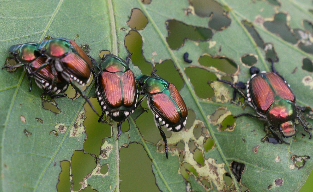 Wählerisch ist der Japankäfer eindeutig nicht. Man kann sogar sagen, die ursprünglich aus Japan stammenden Krabbler fressen so ziemlich alles: Popillia japonica ernährt sich von über 300 Wild- und Nutzpflanzenarten. Und wie es so ist mit eingeschleppten Schädlingen, verursachen sie ausserhalb ihres Ursprungsgebiets grosse Schäden.