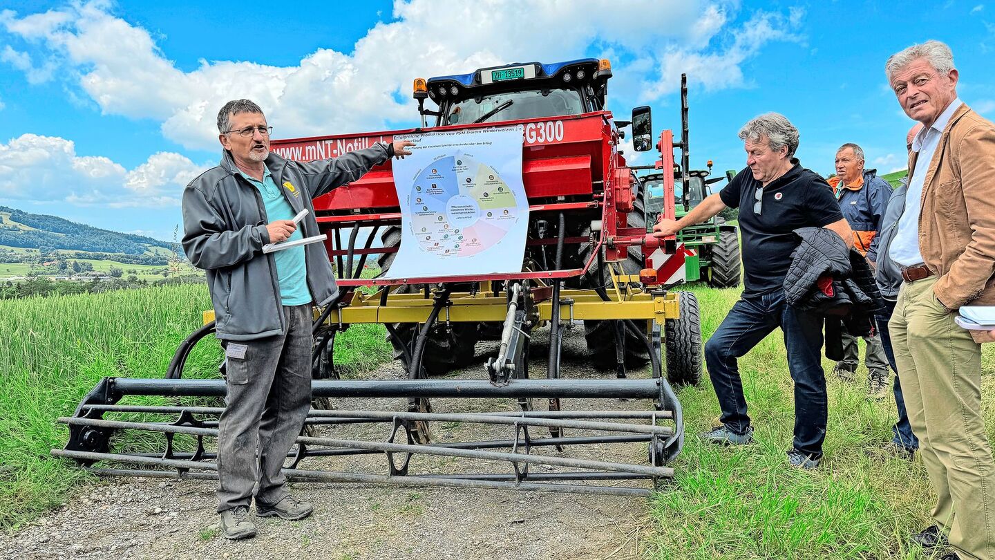 Es ging im Allgemeinen um die Bodenfruchtbarkeit, im Konkreten schaute man beim herbizidfreien Getreideanbau, bei der Saattechnik und bei den Gründüngungen genauer hin. Letztere seien gerade in den Sommermonaten ein wesentliches Element für den Erhalt der Bodenmikroorganismen, konstatierte Bruno Sticher. Denn ein nackter Ackerboden könne sich in einem heissen Sommer deutlich über 60 °C aufheizen. Sei er hingegen mit einer Gründüngung bewachsen, steige die Bodentemperatur nicht über 30 °C. Sei der Boden zu heiss, sei es wie beim Menschen, meinte Sticher; der Boden habe «Fieber» und die Mikroorganismen würden bis in eine Tiefe von 6 cm flächendeckend absterben.