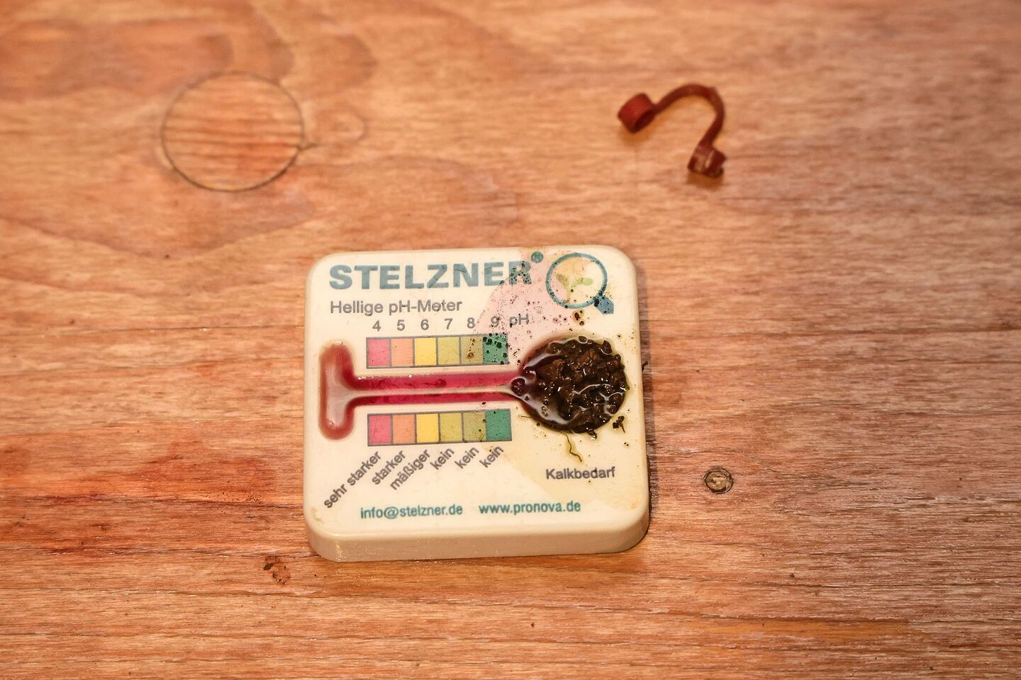Als weiteres Hilfsmittel zur Beurteilung der Bodenreaktion empfiehlt Anderegg das «Hellige pH-Meter». Dabei handelt es sich um einen Indikationstest, der mit einer Indikatorlösung und einer Farbskala den pH-Wert bestimmt.