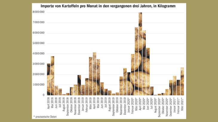 Das Bundesamt für Landwirtschaft (BLW) habe deshalb das Import-Kontingent vorübergehend erhöht, schreibt die sda. Ruedi Fischer, Präsident des Verbandes Schweizer Kartoffelproduzenten, schwächt diese Begründung jedoch ab.