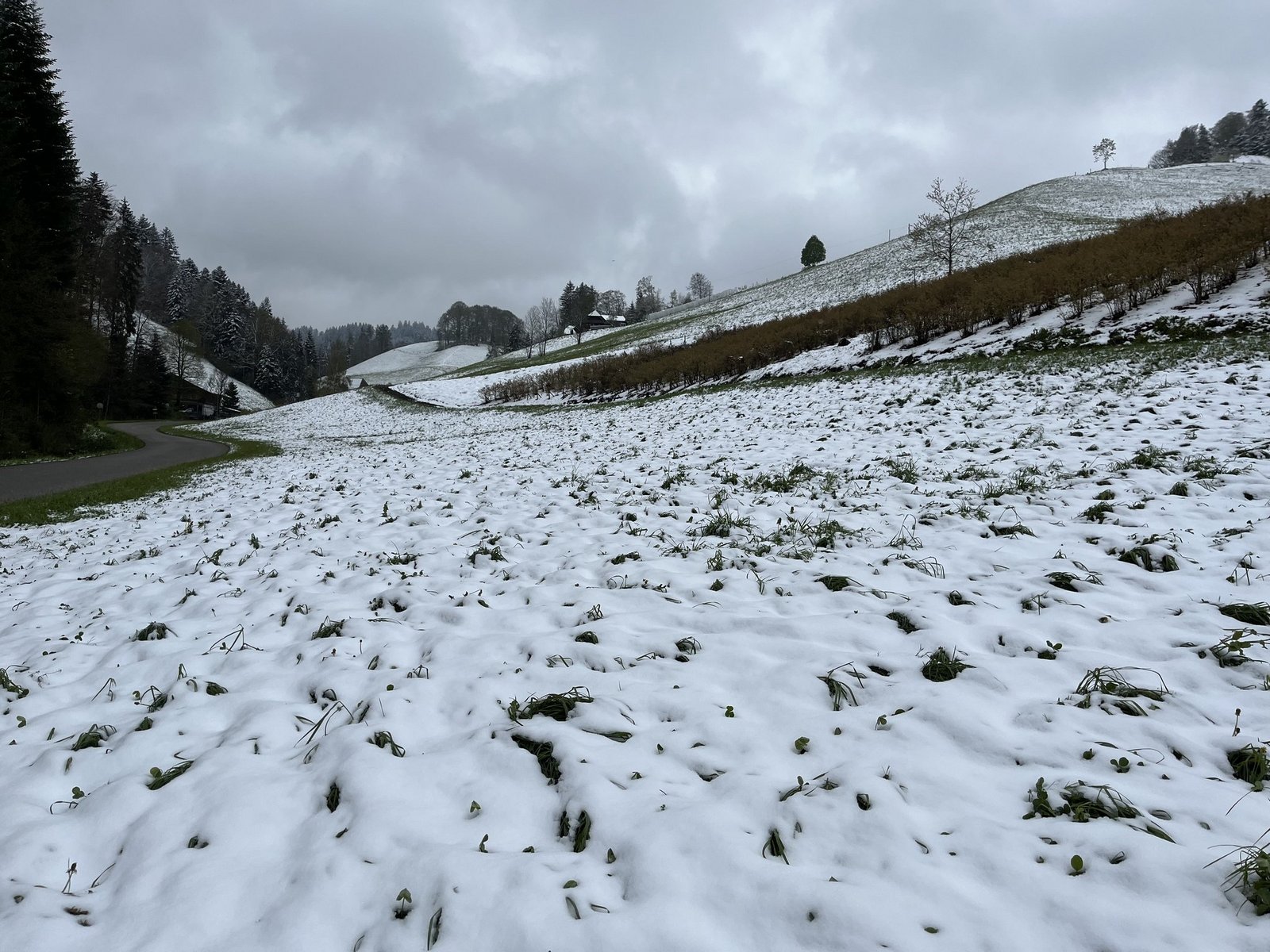 Dieser Anblick schmerzte ein bisschen. Anfang Woche waren viele schattige Matten eingedeckt mit Schnee; von weidenden Kühen oder laufenden Mähwerken fehlte jede Spur. Wetterfachleute betonen jedoch, der gefallene Schnee und die tiefen Temperaturen überraschten definitiv weniger als die äusserst sommerlichen Tage vor dem Kälteeinbruch.
