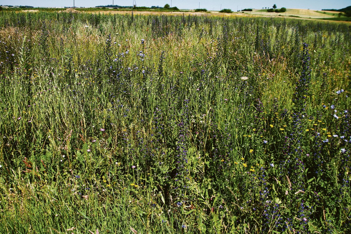 «Das Kornblumenblau ist der Ersatzhimmel für Insekten», führte Martin Bolliger vom Schaffhauser Naturschutzamt aus. Die Kornblume ist nur eine der vielen Pflanzenarten, welche sich auf den verschiedenen Flächen wieder verbreiten können. Es sind weitere sehr seltenen Arten zu finden: Etwa der Venusspiegel, das Adonis-Röschen oder der Acker-Steinsame. Martin Bolliger sieht in der Erhaltung solcher Pflanzen auch eine Investition in ein gewaltiges genetisches Potenzial und Archiv: Viele Wildpflanzen stehen am Anfang von heutigen Kulturpflanzenarten. «Was nicht ausstirbt, kann schon morgen wertvoll sein», so Bolliger. Er wies dabei auf Gräserarten hin, welche die Urform von Getreidearten sind. So hat für ihn beispielsweise auch die Roggentrespe grosses Potenzial für die Entwicklung neuer Getreidearten. Im Klettgau ist auch der Wilde Lattich mit seinem typischen Milchsaft zu finden, welcher der Ursprung des Kopfsalates bildet. Bolliger wies auch auf weitere wertvolle Pflanzenarten hin, etwa das Johanniskraut, den Ackerrittersporn oder den Saatleindotter.
