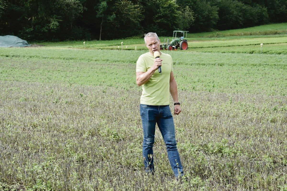Sobald die Kräuter spriessen, aber die Blüte noch nicht erreicht ist, geht Ernst Flückiger mit seinem alten Schilter durch die Pflanzen. "Den habe ich für den Kräuteranbau speziell umgebaut", erzählt der Biobauer. Im ersten Jahr könne er damit ein- bis zweimal ernten. "Für einen zweiten oder dritten Schnitt erreichen die Kräuter meist nicht mehr die gewünschte Höhe", erzählt er. Aber wenn Flückiger beim Thymian nicht zu tief ansetzt, könne er hier noch einen zweiten Schnitt im September rausholen. In den Folgejahren sei das dann kein Problem mehr. "Die Pflanzen sind gross genug und können je nach Kultur zwei, sogar bis zu drei Schnitte vertragen", ergänzt der Biobauer.