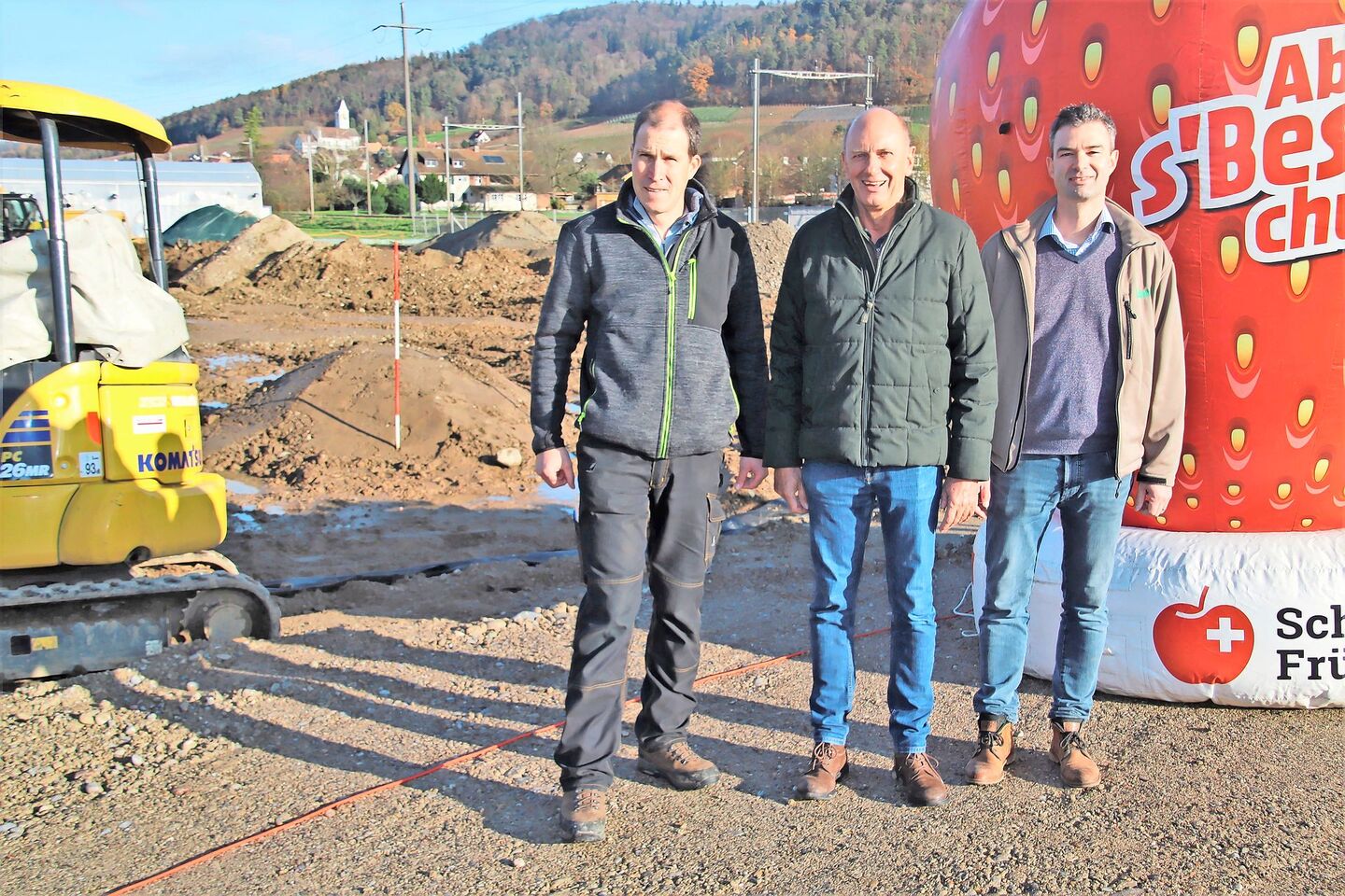 Am Dienstagvormittag wurde der Baustart mit einem kleinen Festakt offiziell gestartet. Vorgesehen ist, dass im vorderen Bereich der Parzelle eine neue, grösstenteils zweistöckige Halle von 25 m Breite und 55 m Länge entsteht. Darin werden eine Tiefkühlzelle, fünf Kühlräume, ein Nassbereich für das Waschen der Spargeln sowie der Trockenbereich zum Packen der Produkte Platz finden. Im Obergeschoss wird zugleich ein Arbeitsbereich für die Trocknung, das Kochen und Weiterverarbeiten von Früchten und Beeren installiert. Auf dem Dach ist eine Photovoltaikanlage geplant, die Strom für den Eigenbedarf produziert.