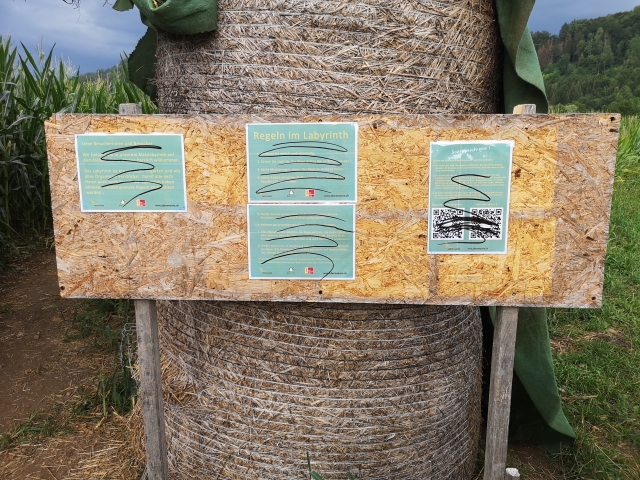 Der Landwirt Dieter Weber fand sein Maisfeld am vergangenen Mittwoch 7. August 2019 verwüstet vor. Vandalen trampelten im Feld herum, liessen Bierflaschen liegen und vermalten fast alle QR-Codes auf den Tafeln des Labyrinths.