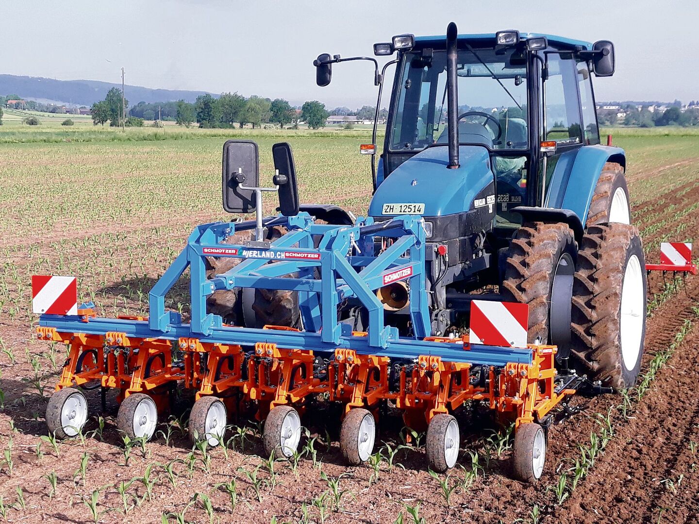 Was ist mit dem Einsatz von Drohnen? «Wenn ich ein konventioneller Betrieb wäre, hätte ich im nass-kalten Frühjahr Schneckenkörner mit einer Drohne ausgebracht, um keine Bodenverdichtungen zu haben. Aber ich bin ein Biobetrieb», antwortet Landis. Auch ein kameragesteuertes Hackgerät ist bei ihm nicht zu finden. Im Einsatz ist ein Fronthackgerät, das von Auge aus, also händisch, zu steuern ist. «Damals musste ich mich entscheiden, ob ich ein kameragesteuertes Hackgerät anschaffen will oder Distanzdoppelräder – finanziell ist der Preis in etwa gleich hoch», sagt Landis, und er entschied sich für Distanzdoppelräder. [IMG 2]