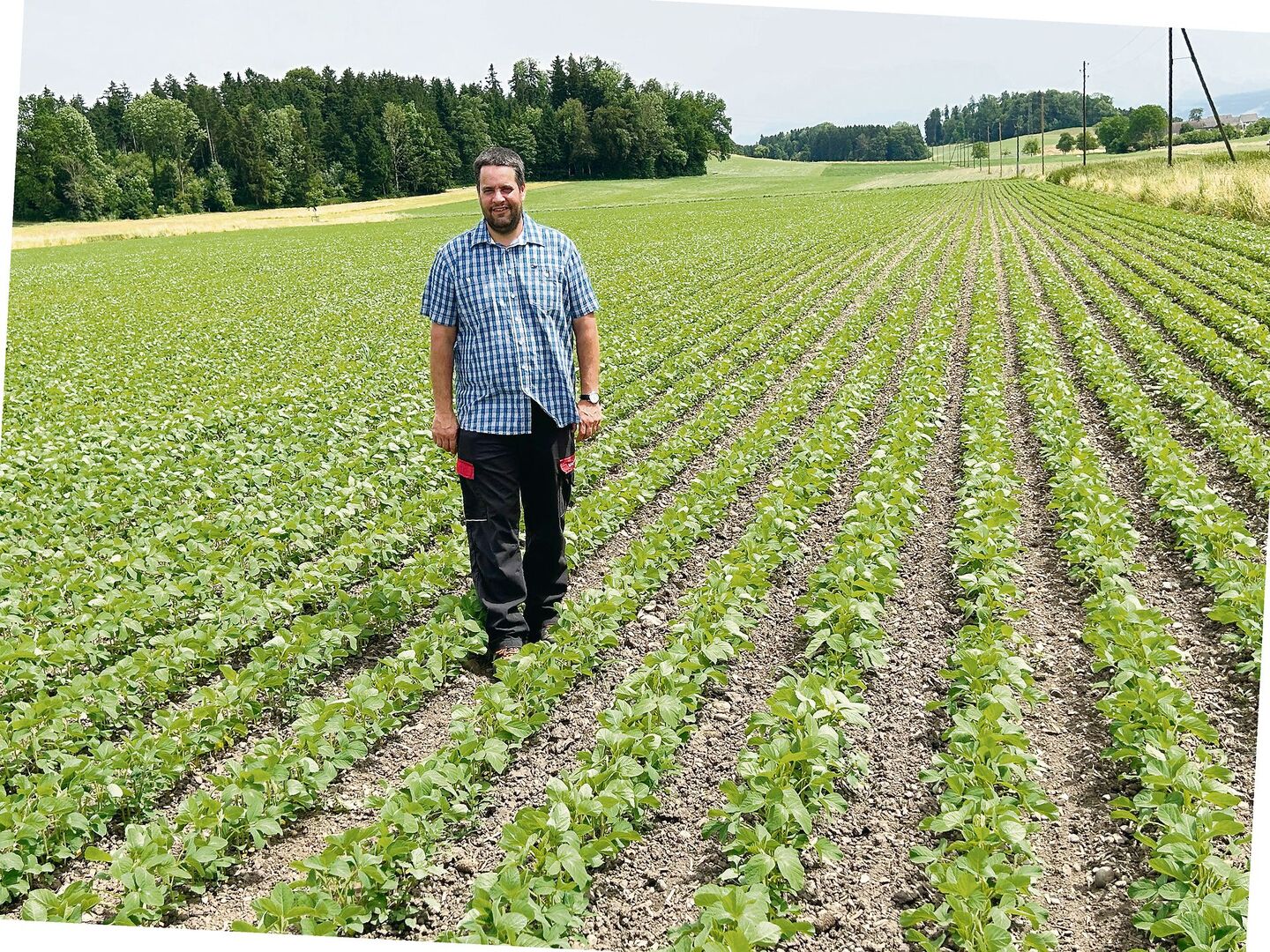 Smart ist Marco Landis in seiner Betriebsführung, das wird einem klar beim Feldrundgang. «Ich habe meine Prinzipien, aber laufe nicht mit Scheuklappen herum», sagt er. Vor sechs Jahren stellte er auf Bio um und sagt: «Ich will saubere Felder und zeigen, dass man mit Bio produzieren und auch etwas für die Umwelt tun kann.»