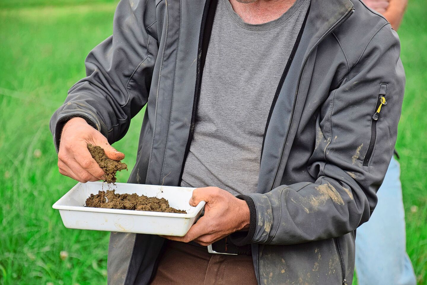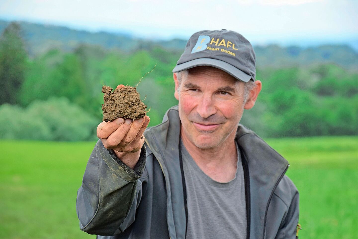 Sorgfältig zerbrach der HAFL-Dozent einige Erdbrocken aus seiner Spatenprobe, die schnell in lockere Krümel zerfielen. «So ein Krümelgefüge sollte man eigentlich überall haben», sagte Stéphane Burgos. Unter einer Wiese ist es eher anzutreffen als auf einer Ackerfläche.