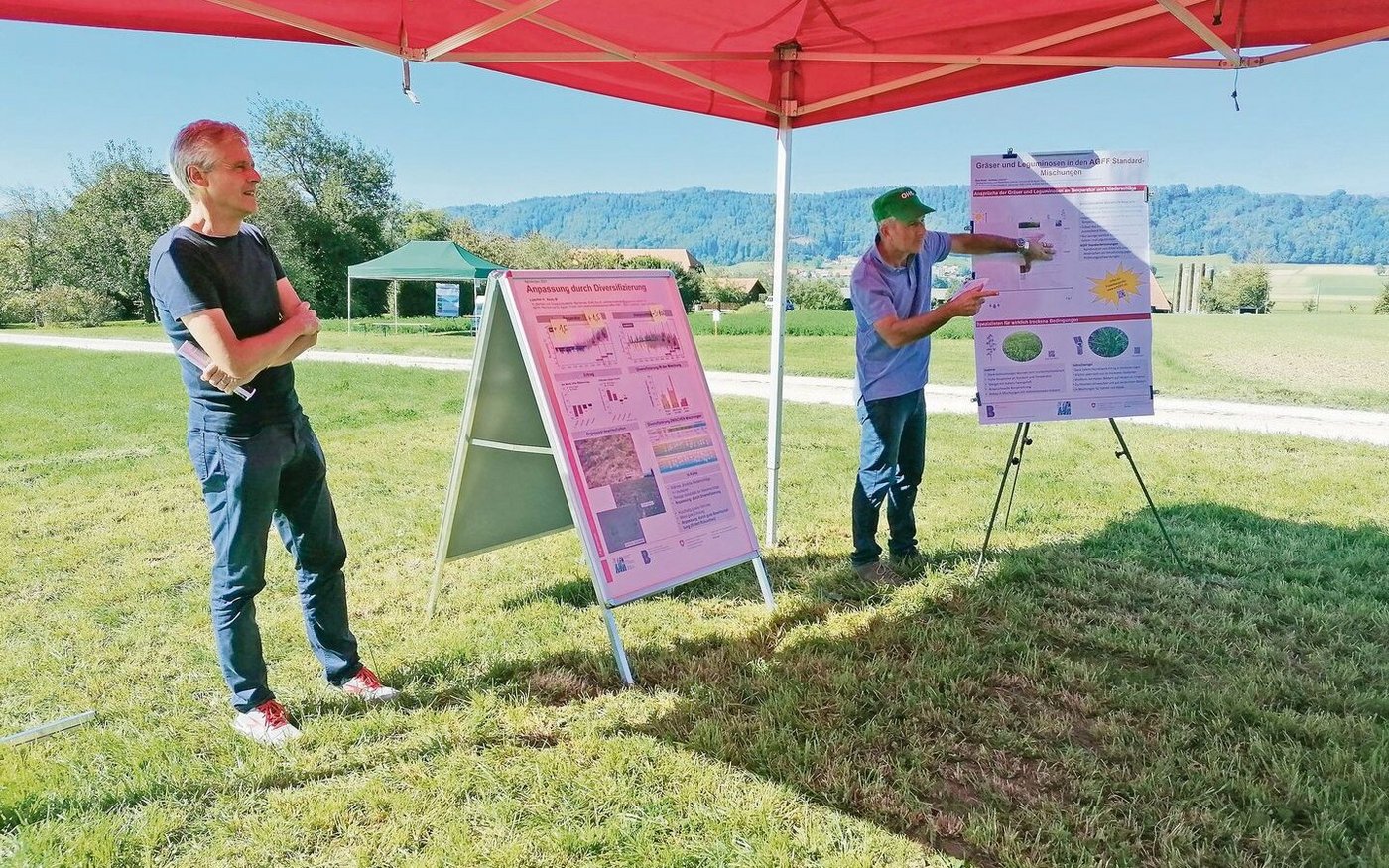Wie kann man sich also anpassen? Lüscher empfiehlt, nebst der üblichen auf dem Betrieb angebauten Mischung für einen Viertel bis einen Drittel der Menge eine etwas trockenheitstolerantere Mischung zu wählen, um für ein trockenes Jahr gewappnet zu sein.