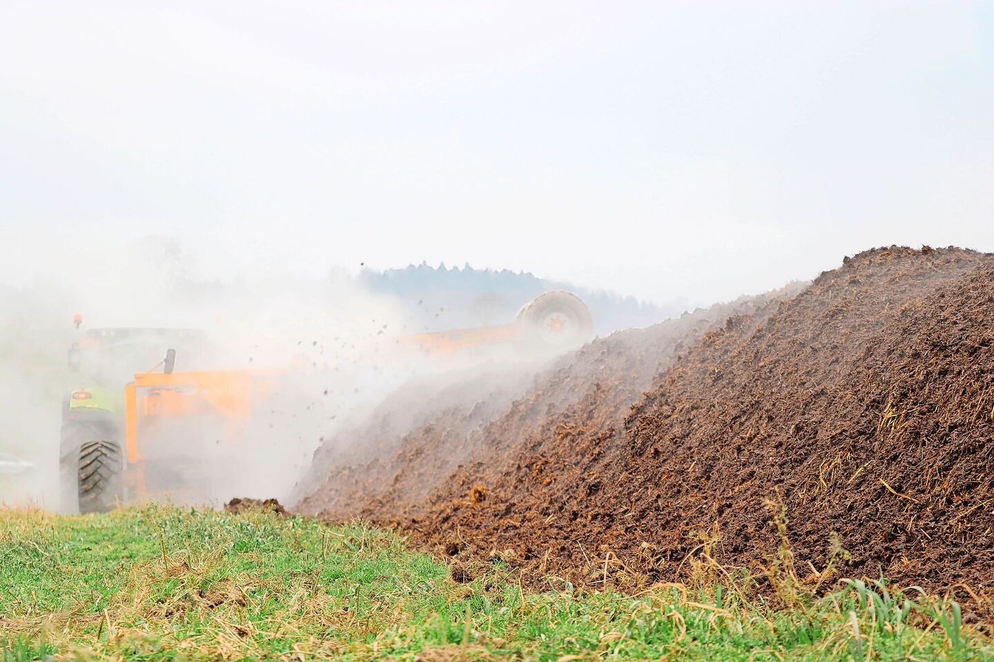 Die aufwändigste Variante ist der Mistkompost, der ebenfalls geruchlos ist oder nach Erde duftet und wie Rottemist eine dunkle bis braune Farbe zeigt. Hier wird der Mist gezielt feucht gehalten und an Mieten reifen gelassen, die man maschinell wendet.