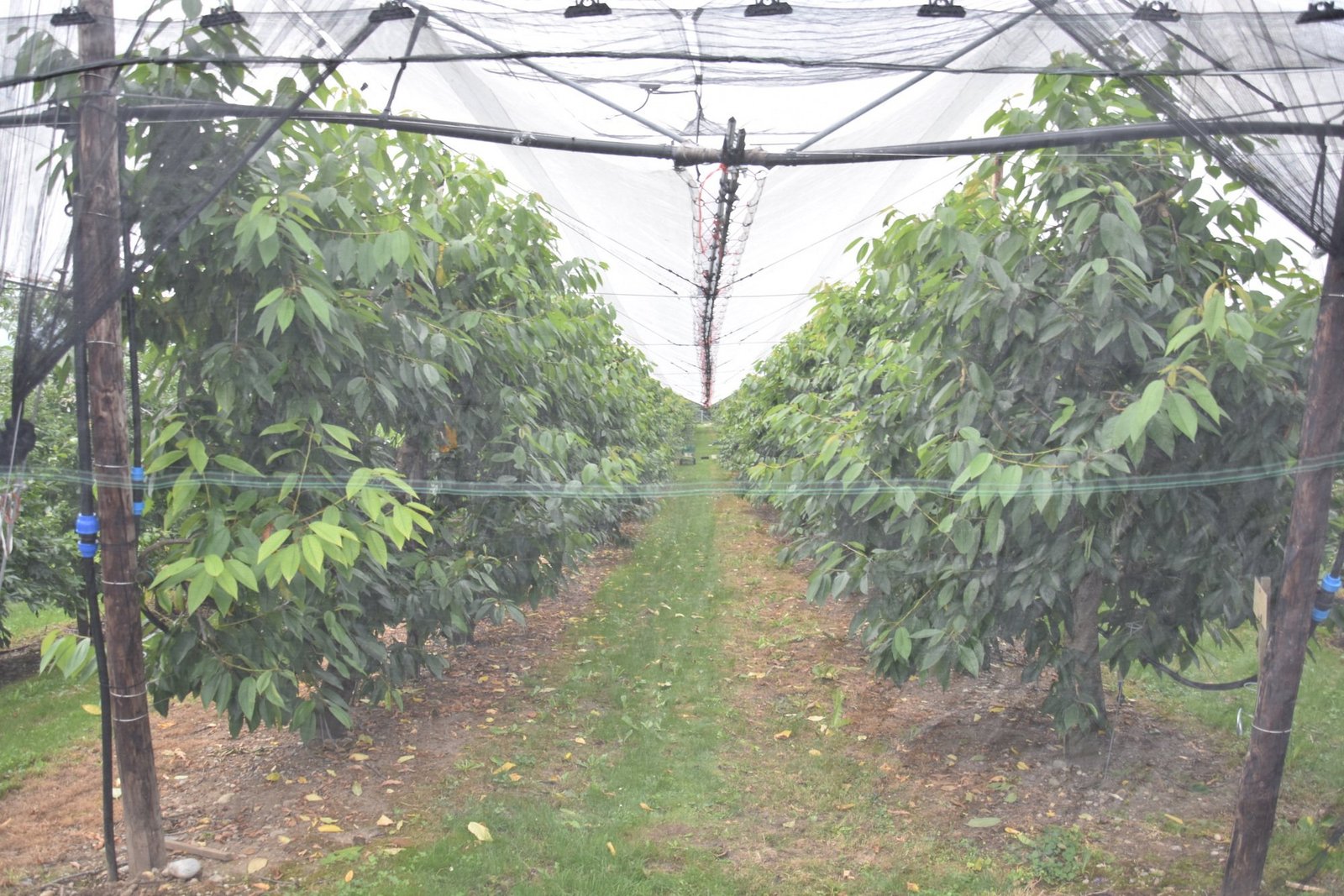 - Volleinnetzung isolierter Bäume oder einer vollständigen Kultur nach der Blüte/zu Beginn der Fruchtbildung mit dicht schliessender Schleuse.