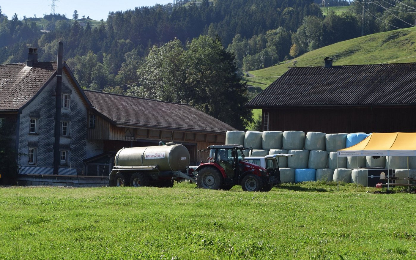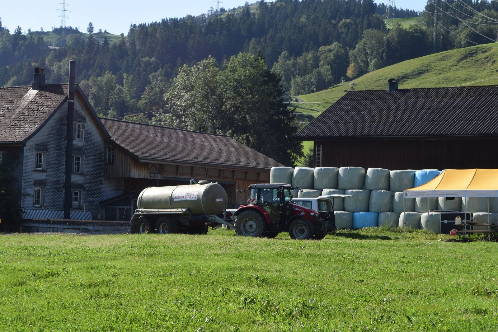Auf dem Betrieb von Bruno Schürpf in Bühler AR erfuhren die Teilnehmer(innen) am 19. August 2023 Wichtiges zur Bodenverdichtung und wie man sie vermeiden kann. «Verdichtung ist immer ein Spiel zwischen Maschinendruck, der auf den Boden einwirkt, und Bodendruck, also wie stark der Boden dagegenhalten kann», erklärte Thomas Keller von Agroscope.