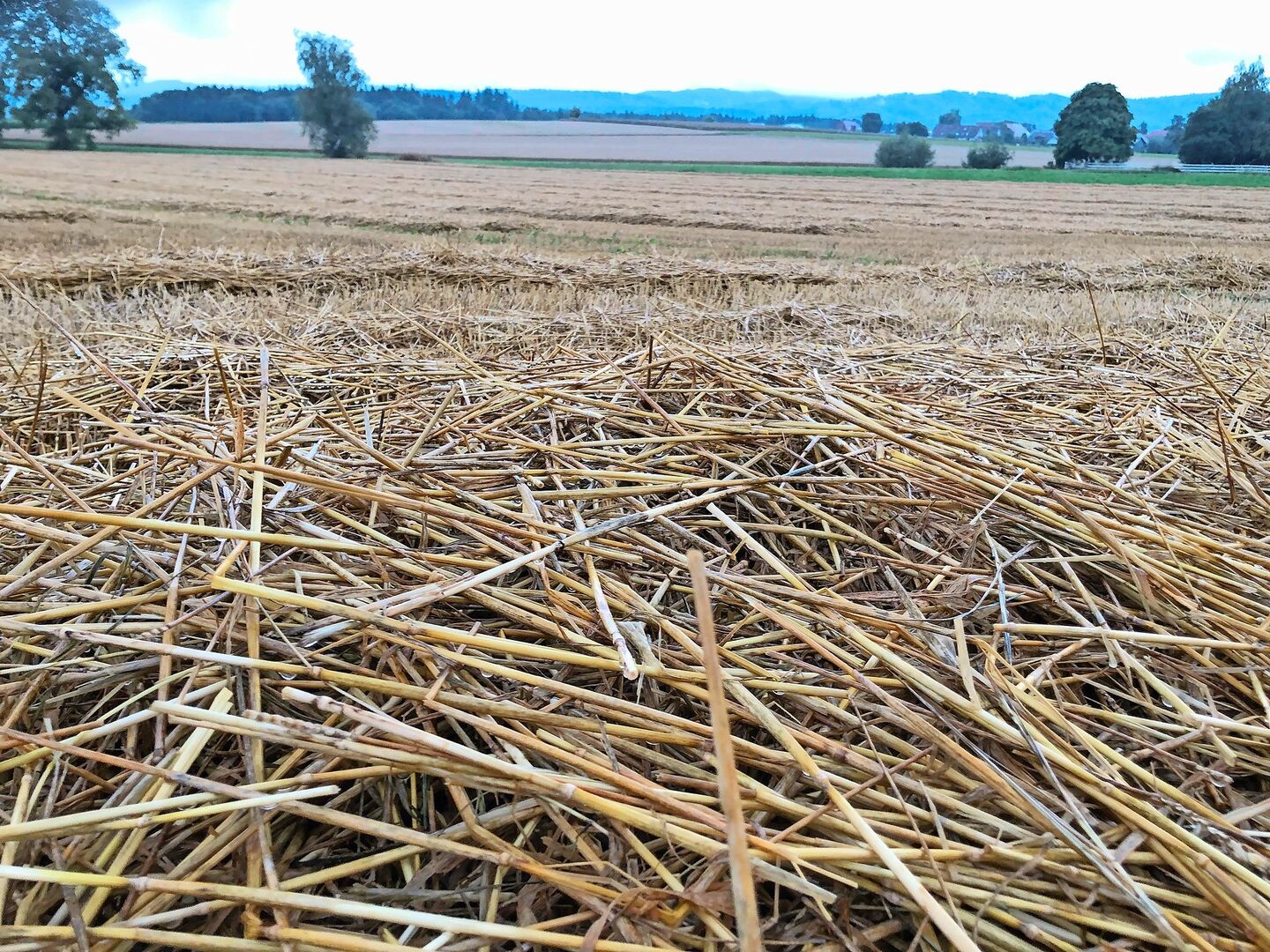 Die Drescharbeiten wurden Ende letzter Woche vom Regen unterbrochen und seither sind die Erntefenster – falls sie sich öffnen – kurz. Nicht überall reicht jeweils die Zeit, das Stroh vor dem nächsten Regenguss einzufahren. Nach wie vor stehen ausserdem noch einzelne Getreide- und Rapsbestände.