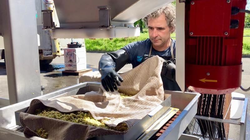 Die Presse drückt nicht etwa von oben nach unten, sondern genau umgekehrt. «Der Motor befindet sich unten an der Maschine, so tropft bei einem Defekt hundertprozentig kein Öl in den Saft», folgt die Begründung des Fachmanns. Nach einem einzigen Pressvorgang ist der Spass bereits vorbei. Zwischen 150 bis 300 Liter Verjus macht Hans Oppikofer jährlich. Den gewonnenen Saft pasteurisiert er und füllt ihn anschliessen in kleine Flaschen oder in Bag-in-Box von drei Litern. «Das Pressen des Verjus ist wie ein kleiner Probelauf. Ich kann schauen, ob bei der Presse alles funktioniert und allenfalls vor der Hauptsaison noch Tücher oder Pressbleche bestellen», meint der Obstproduzent, bevor er sich ans Reinigen der Maschine macht.