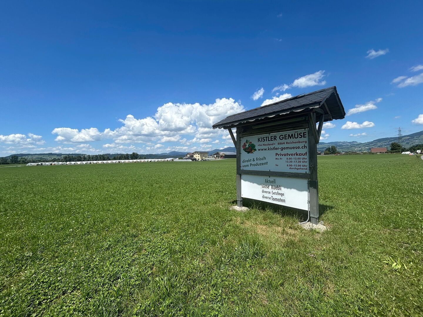 Peter Kistler faltet am Küchentisch die Baupläne auseinander. «Wir sitzen jetzt hier im Wohnhaus, von wo aus wir unseren Betrieb managen», erklärt er. Daneben stehen die Kühl- und Lagerräume, die Gemüserüsterei und der Hofladen auf rund 45 a Eigenland. «Diese Parzelle hat mein Vater 1961 von der Allgemeinen Genossame Reichenburg (AGR) erworben. Schon Jahre vorher hatte er die 12,5 ha rundherum gepachtet», erzählt Kistler.