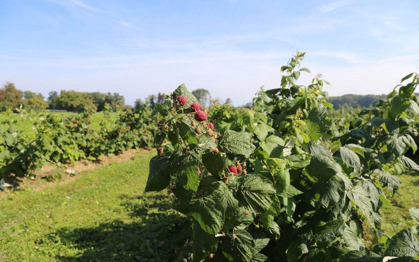 Bei Sirup, Saft, Smoothies oder Konfitüre wird selten hinterfragt, wo die darin verarbeiteten Früchte herkommen – die Schweizer Herkunft ist kein Thema. So sind Verarbeitungshimbeeren fast zu 100 Prozent Importware. Eine Handvoll Produzenten in der Bodenseeregion haben auf die Initiative der St. Gallischen Holderhof Produkte AG hin nun auf rund sechs Hektaren sogenannte Herbsthimbeeren zur Verarbeitung angebaut. Unter anderem Landwirt Peter Lenggenhager, der beim Holderhof ausserdem für den Vertragsanbau zuständig ist, erntet auf seinem Betrieb auf einer halben Hektare diesen Herbst bereits zum ersten Mal Verarbeitungshimbeeren. Sein Hof ist einer von sieben Standorten, die für das Holderhofunternehmen seit diesem Jahr Verarbeitungshimbeeren anbauen.