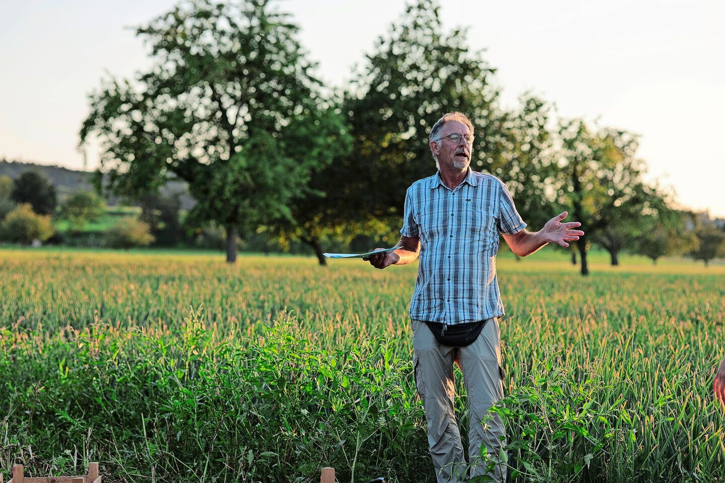 Gemeinsam mit Tobias Neuenschwander, Präsident der IG Kartoffel- und Zwiebelproduzenten, wurde zudem auf vier Parzellen Zwiebeln vorgeerntet und zwei Wochen warm und trocken gelagert, um so die Ernte und Lagerung zu simulieren. Viele Lagerkrankheiten zeigen im Feld keine Symptome. Durch die simulierte Lagerung werde untersucht, wie hoch das Risiko für Lagerkrankheiten nach diesem nassen Jahr und an vernässten Stellen ist.