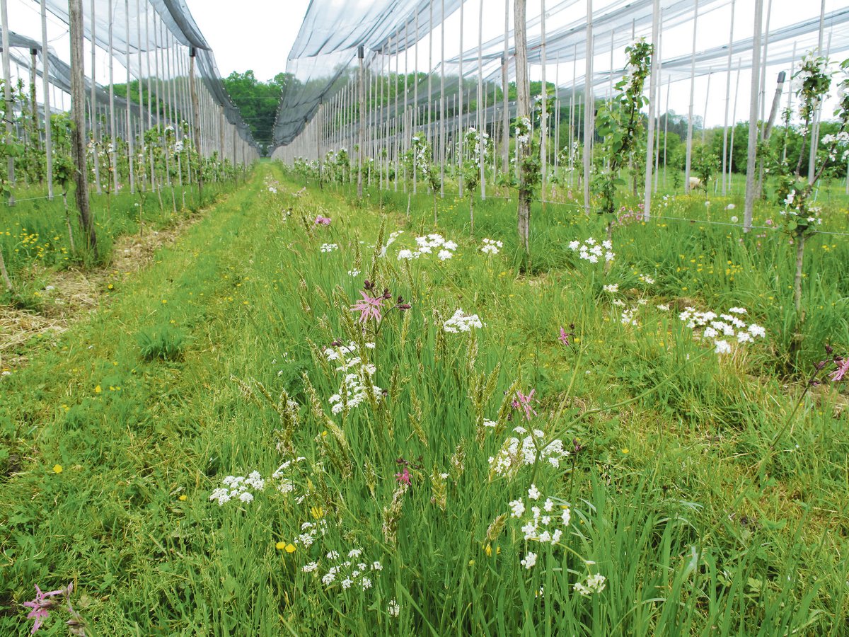 Im Zuge einer mehrjährigen Studie untersuchte daraufhin das FiBL – in Zusammenarbeit mit europäischen Partnern – die Auswirkungen von Blühstreifen auf die Artenvielfalt und die natürliche Schädlingsreduktion, unter anderem auch in Müller-Dornigs Obstanlage. "Dabei stellten wir fest, dass in Obstanlagen mit Blühstreifen weitaus mehr Nützlinge vorzufinden sind als beispielsweise in Fahrgassen mit spontaner Begrünung", erklärt Lukas Pfiffner, FiBL-Wissenschaftler, die Studienergebnisse. Durchschnittlich habe man 4,2 Prozent mehr Schwebfliegen und 29,7 Prozent mehr Florfliegen in den Blühstreifen gezählt. Prädatoren wie Spinnen, Laufkäfer und Raubwanzen hätten in kurzer Zeit um 25,6 Prozent zugenommen. Parallele Studien aus Europa bestätigen den Effekt.