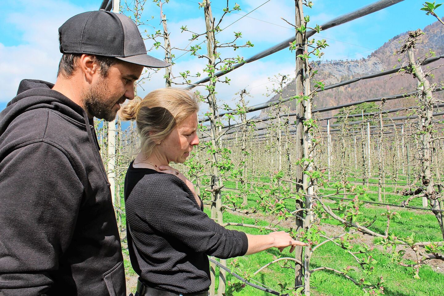 «Im letzten Winter gab es einige Kälteperioden, das war gut», berichtet Dominic Kuppelwieser. Auf natürliche Weise reduzieren die tiefen Temperaturen Schädlingsbestände. Ende Februar sorgte der Föhn im Churer Rheintal für Temperaturen bis knapp 20 °C. Diese Temperaturen wecken die Obstbäume aus ihrem Winterschlaf. Auf dem Rundgang durch die Obstanlage beäugt der Obstbaumeister seine Kulturen aufmerksam. Ende März sind die Blüten noch von den Kelchblättern umschlossen und auf natürliche Weise vor Kälte geschützt. Sobald sich die Blütenknospen öffnen, verwandelt sich die Obstanlage in ein weisses Blütenmehr und ist den tiefen Temperaturen ungeschützt ausgeliefert. Sollte Väterchen Frost zuschlagen, beginnen für die Familie die schlaflosen Nächte.