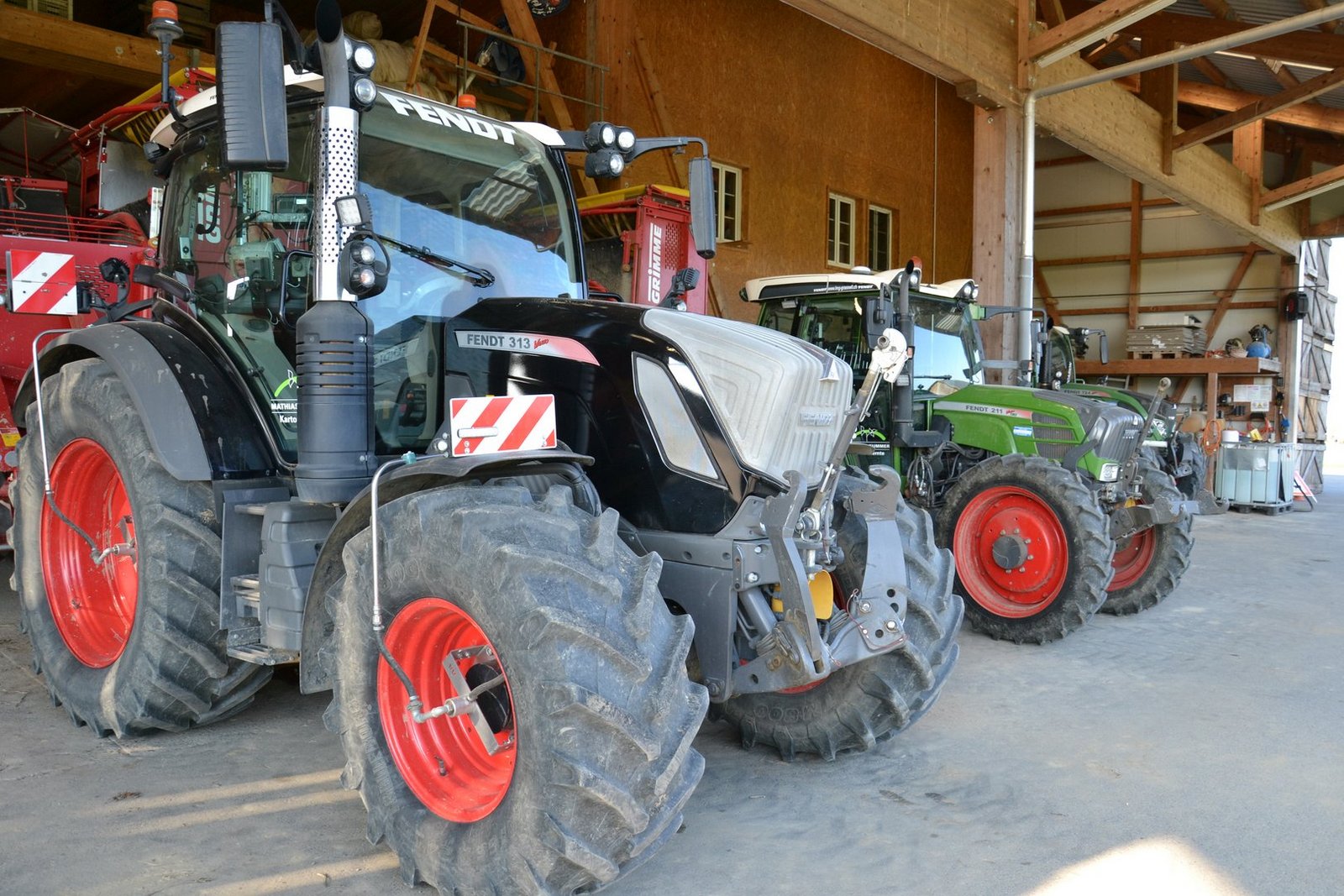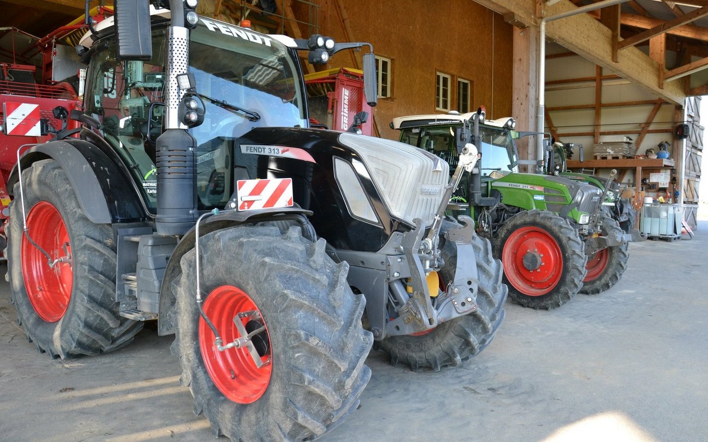 Den Anbau der Kartoffeln – vom Legen über den Pflanzenschutz bis zur Krautvernichtung – überlässt der Berner seiner Kundschaft bzw. anderen Lohnunternehmern. Er arbeite lieber miteinander statt gegeneinander, begründet Mathias Kummer seine Beschränkung auf einen einzigen Schritt, die Kartoffelernte. Dafür ist er in diesem Metier versiert und kennt seine Maschinen in- und auswendig. Wortwörtlich, denn jeden Winter nimmt er sie für Wartung und Reparatur auseinander. Dass alles vom selben Hersteller stammt, vereinfacht die Ersatzteil-Beschaffung. Bei der Wahl eines ein- oder zweireihigen Roders spiele bei seinen Kunden oft das Gewicht eine Rolle, erzählt der Lohnunternehmer. Hier sieht Kummer die Grimme-Geräte generell im Vorteil. «Ropa ist sicher neben Grimme ein sehr guter Marktbegleiter», stellt er klar. «Aber für unseren Betrieb passt Grimme besser.» Zum Bodenschutz hat der Lohnunternehmer alle Traktoren, die als Zugmaschinen aufs Feld kommen, mit Reifendruckregelanlagen ausgestattet.