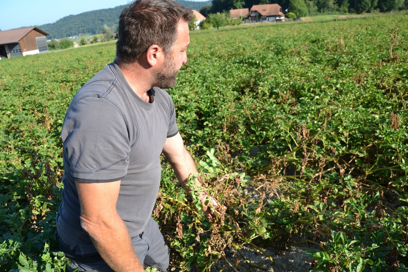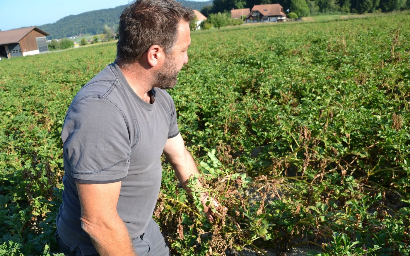 Ab Juni, bis Ende Juli erntet Mathias Kummer Frühkartoffeln, gefolgt von Pflanzkartoffeln und Frites-Sorten, die zur direkten Verarbeitung unter grünen Stauden gegraben werden. «Ich habe selbst Versuche durchgeführt mit der neuen Frites-Sorte Lady Jane», erzählt der Landwirt. Sie habe sich als robust gegen Trockenheit und Alternaria erwiesen. Er hofft, dass solche Sorten bald auch auf dem Markt bessere Chancen haben. Immerhin hat sich die Branche dazu bekannt. «Die Kartoffel-Züchtung dauert sehr lange», ist sich Kummer bewusst. «Aber man merkt, dass an den Sorten gearbeitet wird.»