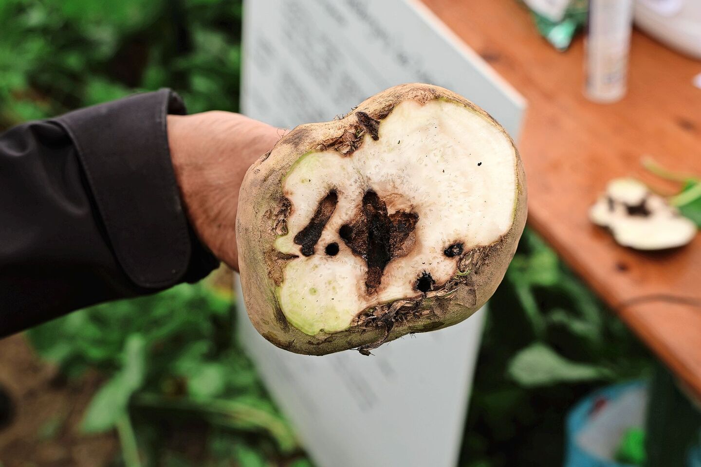 Als positive Nachricht bei den Rüben hob dann Matthias Aebi, Berater Oberaargau, einen Spritzversuch mit dem bereits in der EU – aber noch nicht in der Schweiz – zugelassenen Fungizid Diadem von der Firma BASF. Das Fungizid enthält die Wirkstoffe Mefentrifluconazol und Fluxapyroxad, auf dem Feld zeigt es gegenüber der Kontrollparzelle eine sehr gute Wirkung gegen die Cercospora-Blattflecken.