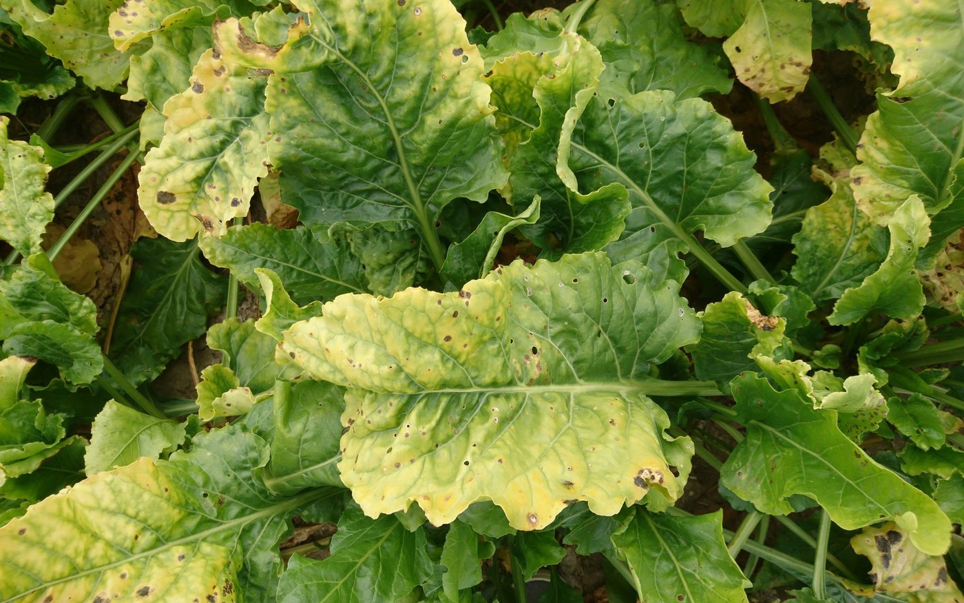 Blickt man in diesen Tagen in ein Zuckerrübenfeld in der Westschweiz, fallen dem Laien hellere, gelbliche Stellen oder grossflächige Aufhellungen auf und der Experte denkt dabei vielleicht an eine viröse Vergilbung, eine von der Blattlaus auf die Zuckerrüben übertragene Krankheit. Untersucht man aber einzelne Pflanzen, zeigen sich bei den älteren Blättern Vergilbungen zwischen den Blattadern, neue Herzblätter sind jedoch unnatürlich langgestielt und zeigen asymmetrische Lanzettformen.