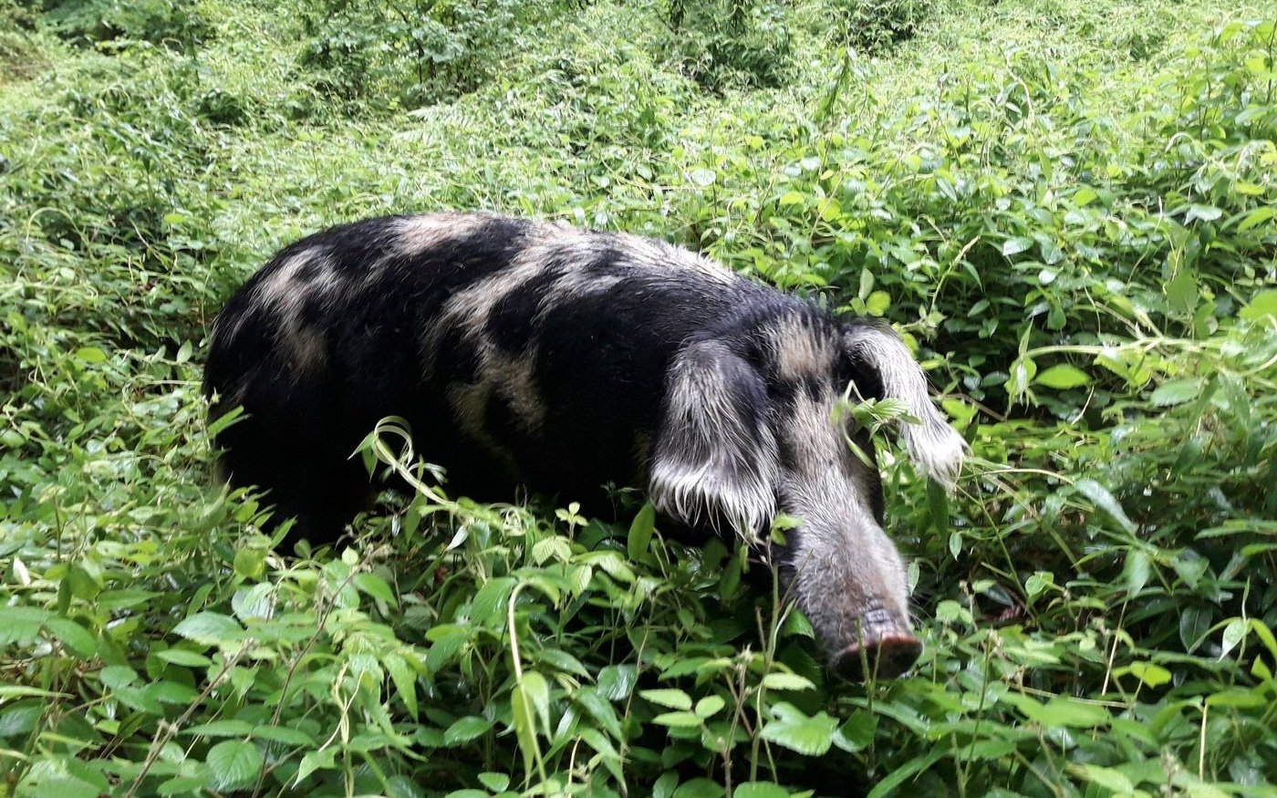 Die Bekämpfung des invasiven Neophyt Henrys Geissblatt (Lonicera henryi) ist schwierig. Verschiedene Bekämpfungsmassnahmen erwiesen sich als erfolglos – und die herkömmliche Bekämpfungsstrategie mit Schneiden und Ausreissen ist sehr arbeitsintensiv. Nun testet das Naturnetz Pfannenstil, ob die temporäre Beweidung mit Turopolje-Schweinen erfolgreicher ist.