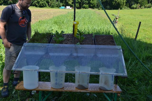 Der Zusammenhang zwischen Bewuchs und Bodenerosion wurde den Besucherinnen und Besuchern des Bio-Ackerbautags anhand eines Experiments erklärt.