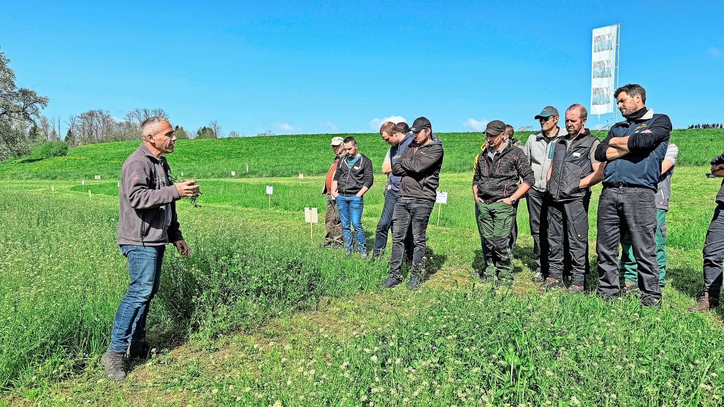 Zahlreiche Mischungen zu sehen gab es am Posten von Daniel Suter von Agroscope und Hanspeter Hug vom Strickhof. Auffällig sei der hohe Anteil an Klee, so Suter. Dieser habe wohl vom warmen Winter profitiert und sei bedingt durch die warmen Temperaturen wieder kräftig am Wachsen.